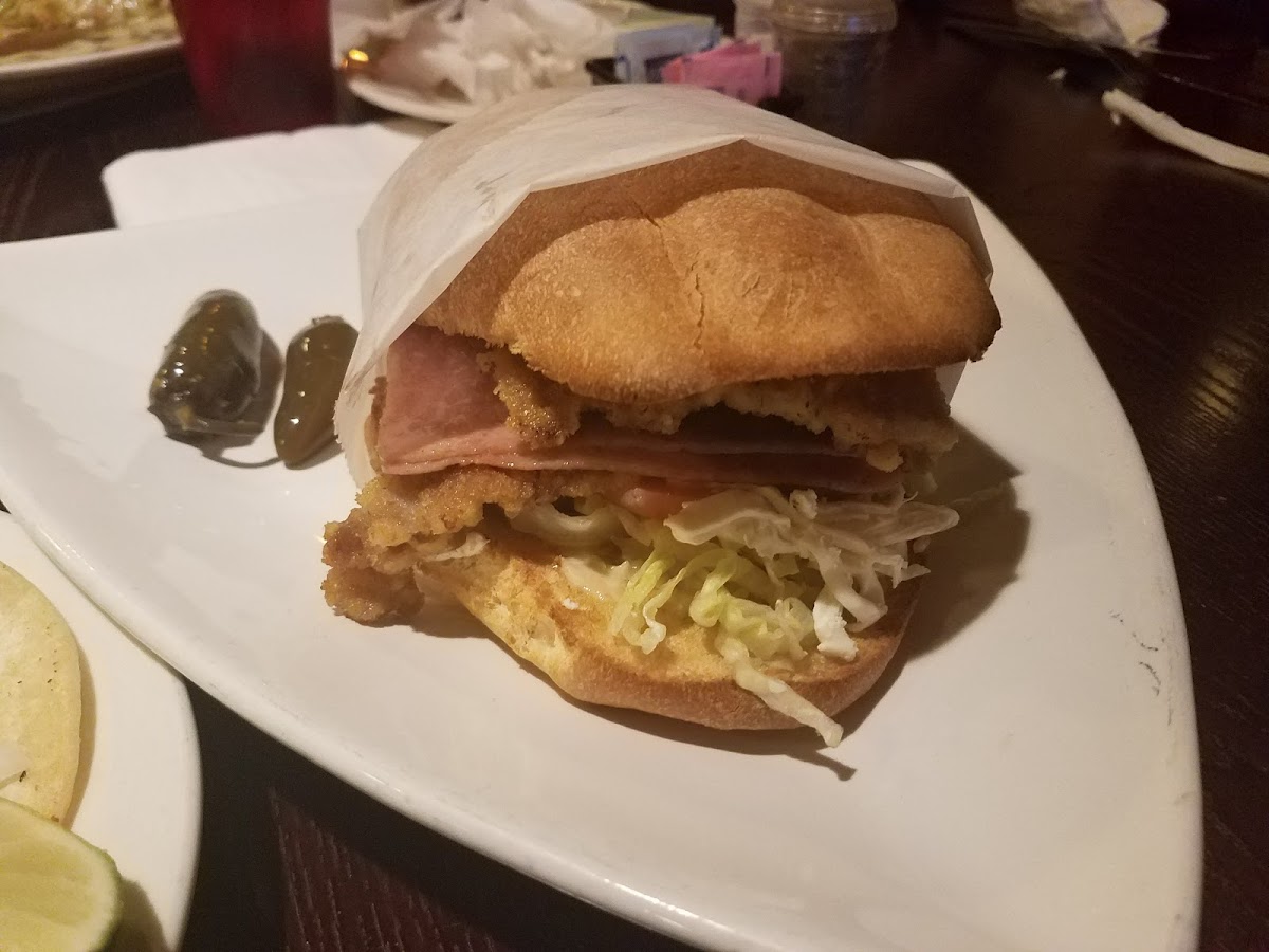Husband had a large all meat Stromboli. It barely fit in the box. They coat it with garlic & parmigiana, so good. I ordered fried chicken chimichanga (sp?). Served with rice & beans, whole thing tasted good.