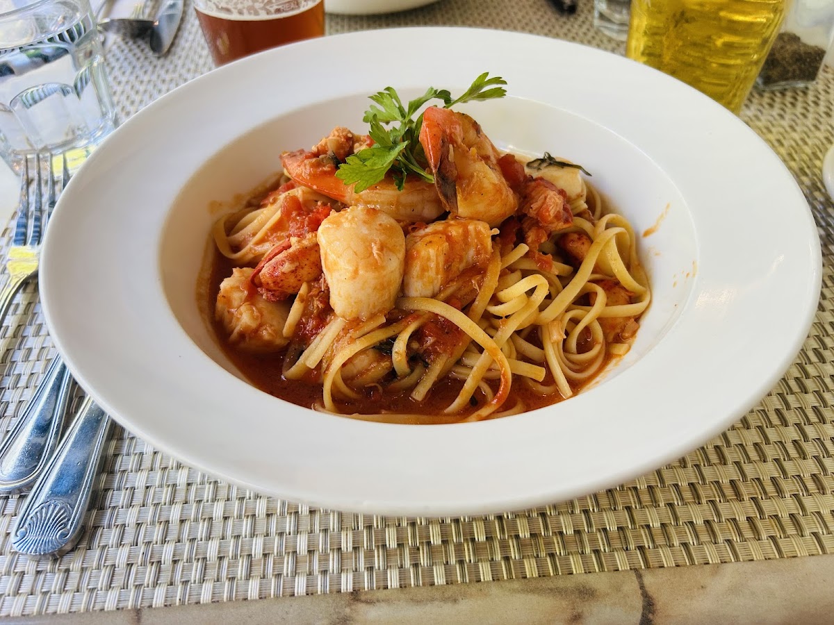Front porch intimate romantic meal with excellent service. Lobster Pappadelle off the hook- cooked Al dente with wide homemade noodles- creamy buttery sauce with plenty of tender lobster. Seafood Fra diavolo equally as delicious with perfectly cooked pasta in a nice spicy sauce with tender lobster, shrimp and scallops. Get the blueberry pie - warm and so sweet on the tongue with whipped cream. Add in some cold draft beer and wine and coffee. Highly recommended!
