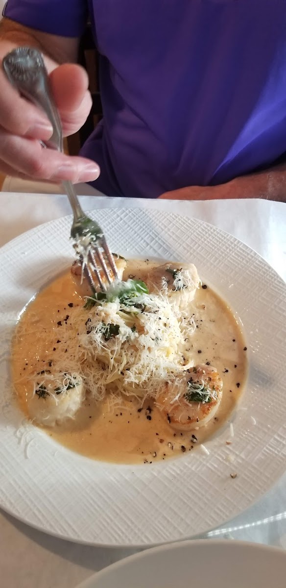 Great restaurant in a beautiful town. We have been here twice and really have enjoyed it both times. The first time was just us two and everything was fantastic. We sat at the bar and had great drinks, a phenomenal dinner and the best mixed berry pie. The second time we came with a party of 6 and things went well but could have been better. The dining room was very nice, comfortable and well lit. Our waitress was kind and polite but because we came off season and it was a busy night, she wasn’t very attentive. She brought 5 pieces of bread and one plate of oil for 6 people. No big deal, we asked for more bread! The drinks came out after a short wait. I asked for my martini dirty but it wasn’t, but it was a good martini. We ordered apps, my seafood sampler was very tasty, very much enjoyed it. It had a clams casino, oyster Rockefeller, and crab cake. Our second set of drinks came, my martini was dirty this time. But the rum drink my family ordered was very different then the first round. The waitress said a different bartender made them, she did offer new drinks but they declined. I got the veal bone in chop for dinner and it was cooked perfectly and was a very large portion, highly recommended. My date and I split the mud pie, it was the best dessert I have had in awhile. We like Roberto’s a lot and will definitely come back. This is a great place! If you liked my review don’t forget to hit the thumbs up!!