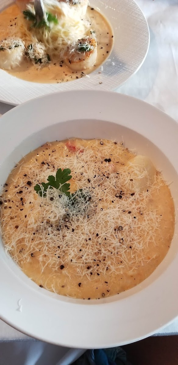 The service was excellent! The lobster bisque was delicious. I ordered the lobster ravioli and it was out of this world. Some lobster mixed with a cheese blend stuffed inside, so much lobster on top in a creamy sauce. Definitely plenty of lobster for some in every bite of my dinner. I thought the price was good and have eaten there before and will go again. Delicious and Wonderful!