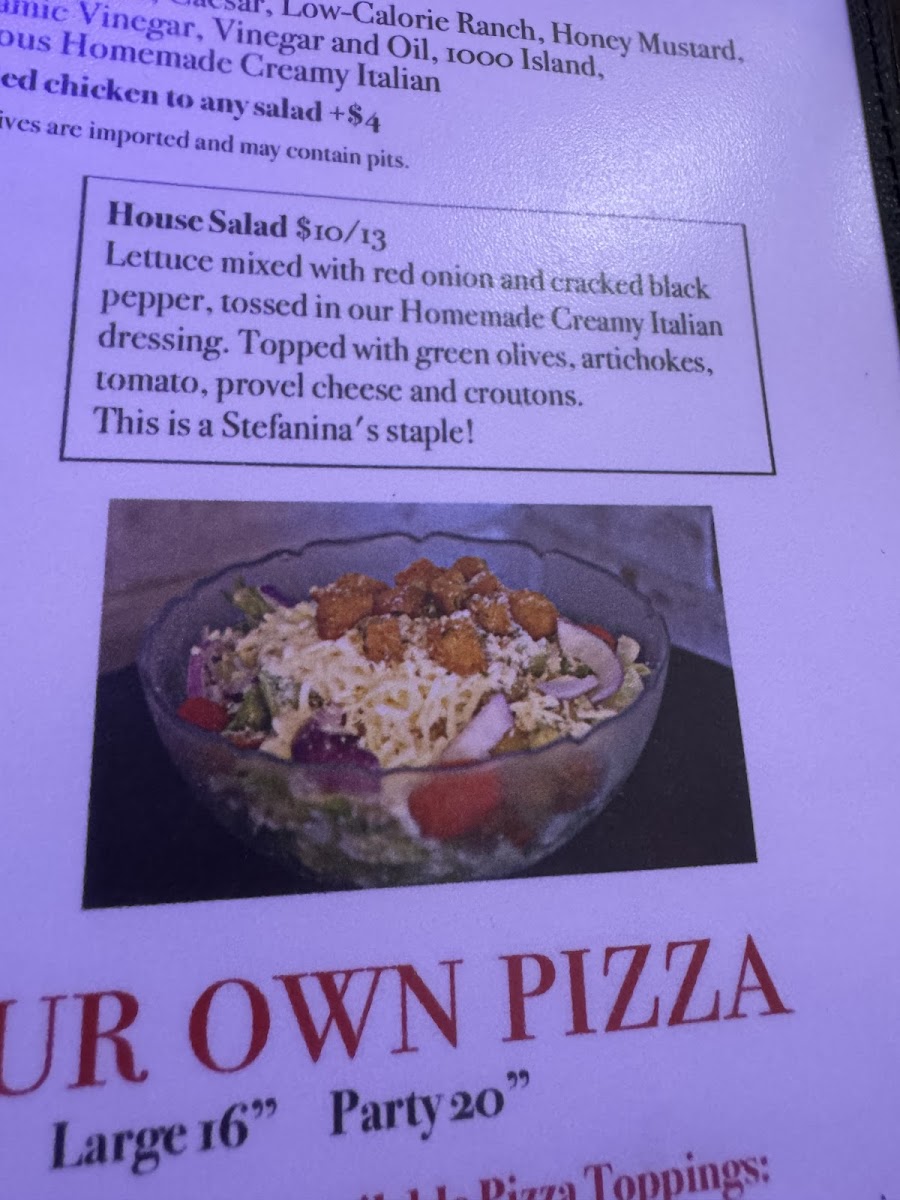 A Large Single Ingredient Pizza, House Salad and Garlic Cheese Bread.