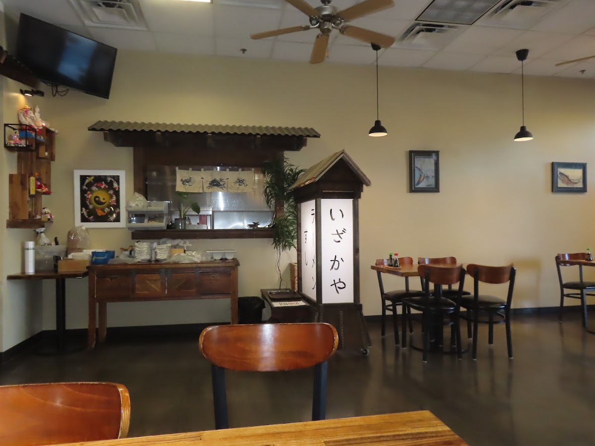 The last time we came here it was actually closed because Google Maps posted the wrong times. I'm glad they fixed it and this time we were able to come when it was actually open. Parking is shared with a bunch of other stores and restaurants, but we didn't have trouble finding a spot. You do have to be careful, though, because the spots are tight and vehicles are squeezing in and out of them. We came when they barely opened, so no one was there and we were seated right away. The waitress said we could sit anywhere, so I chose a booth big enough for just 2 people, but she said we could have the bigger table instead so we could have more space, which was considerate of her and already a good start. They did a good job of decorating the place to make it uniquely Japanese. There's a big lit up sign that says "izakaya" (pub) in Japanese and a shelf that looks like an oversized bento box. The food arrived quickly and came out as soon as each dish was ready. The spicy edamame was so flavorful. For the mango salad, the waitress made sure to inform us that it actually had fish in it because she said other customers had been surprised by it before which was, again, considerate of her. I felt bad because each time a dish came out, I had her repeat what it was because I couldn't understand what she said because of her accent. Meanwhile, I'm vegetarian, so I wanted to make sure I wasn't getting the dishes with meat in it. The vegetable cut rolls were beautifully presented and tasted good. However, I was surprised by how skinny the avocado cut rolls were. Usually they have more rice or avocados or both. It made me wish I had just ordered two servings of the vegetable ones instead. I also wish they had put vegetarian options for the bento combo since the sushi rolls by themselves don't usually fill me up. Afterwards, the waitress noticed I was taking a lot of photos and offered to take our picture which was, again, considerate of her.