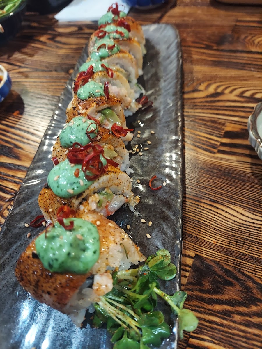 Delicious food & beautiful presentation! We had Soft Shell Crab, Salmon Teriyaki & Rainbow Roll Bento Box, Miso-Glazed Cod, Seafood Paradise Roll, and Matcha Tiramisu. Everything was delicious, and we were very impressed by the beautiful food presentation.