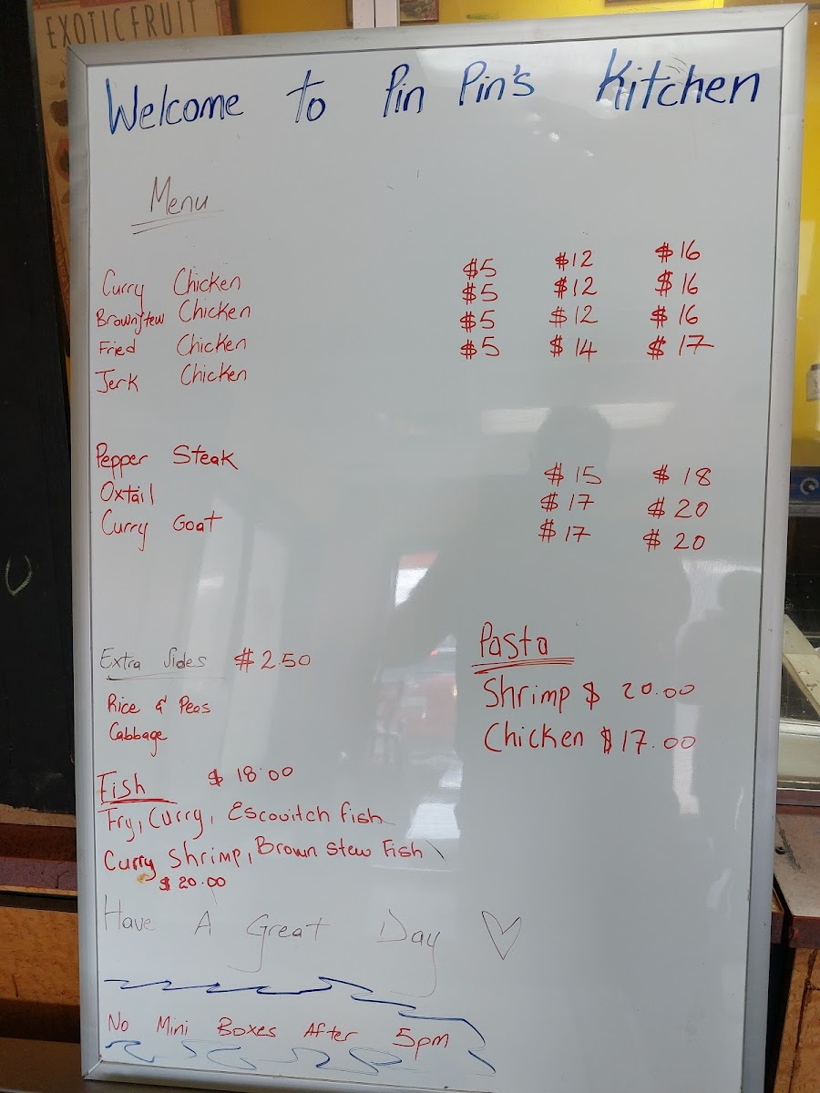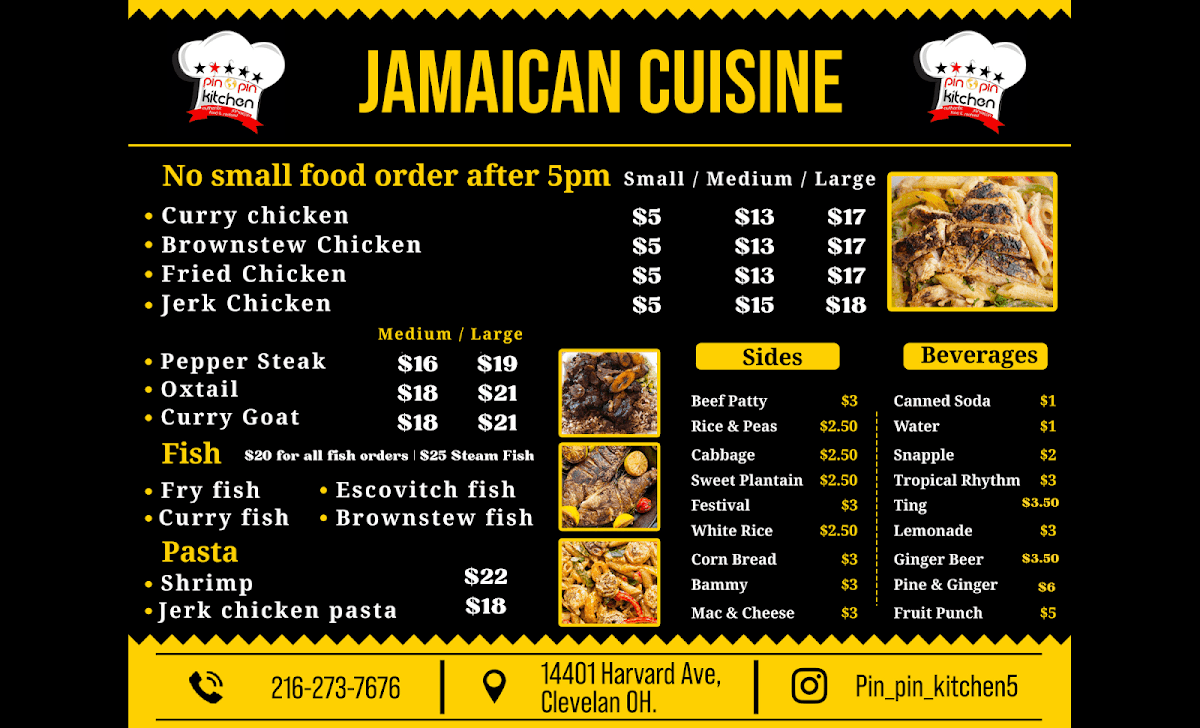 Spicy seasoned chicken with rice and peas, served alongside sautéed cabbage and carrots. Includes two portions of sauce.