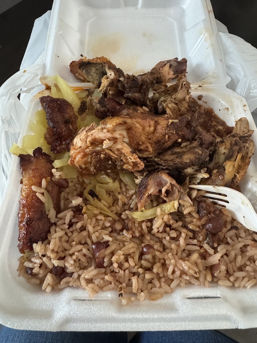 This is for you if you like spicy food. I got the jerk chicken with brown stew sauce with rice and peas and plantains and cabbage. My bro got oxtails plate and beef rib and he threw away his rice and peas because of the heat and spices. I went here on 2/19/2025.