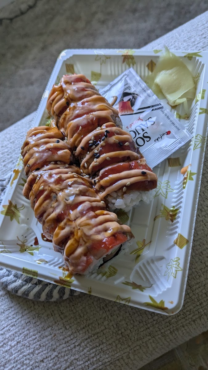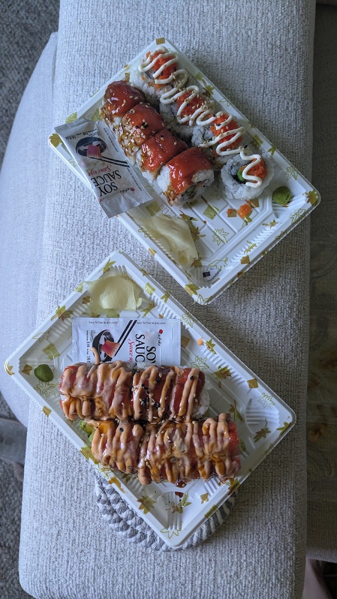 We have been meaning to try this place for awhile and since we were at a hobby night at nearby showcase comics we walked over and gave it a go. Food was prepared as ordered and absolutely lovely, fresh, tasty, and packaged well. Hubs thoroughly enjoyed the tuna ngiri and we particularly enjoyed the beef teriyaki roll. Rolls were formed well and didn’t fall apart, easy to eat. Even though this has the appearance of a chain it’s just a small local business and the staff were incredibly helpful and friendly. Give it a try!