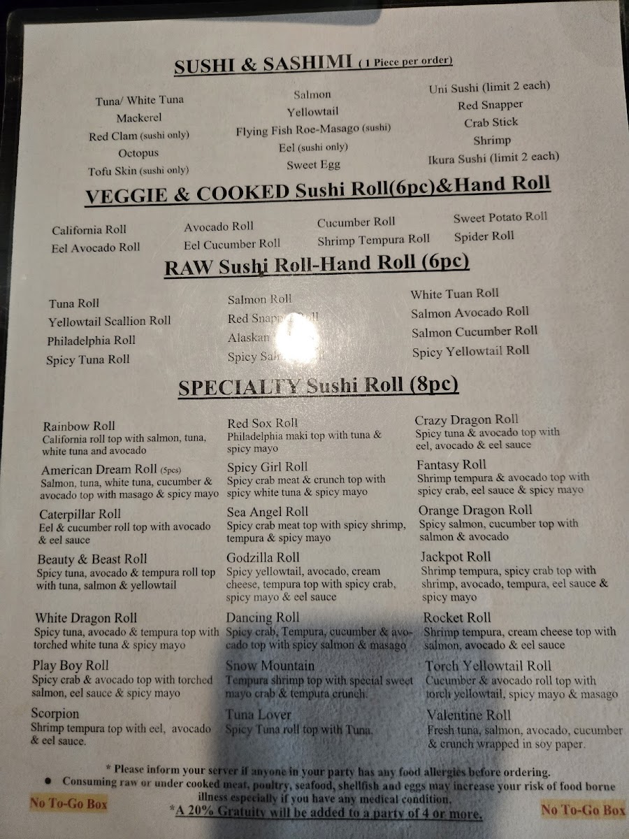 Shrimp tempura & avocado top with spicy crabmeat, eel sauce & spicy mayo.