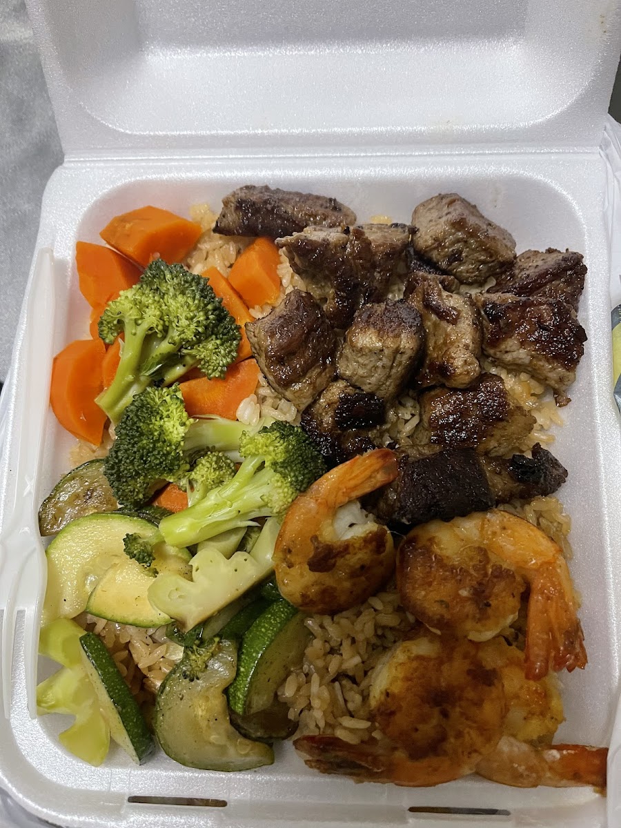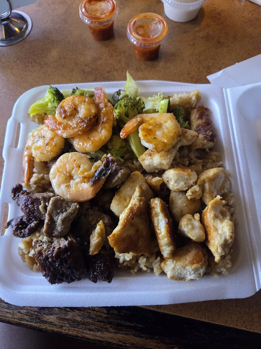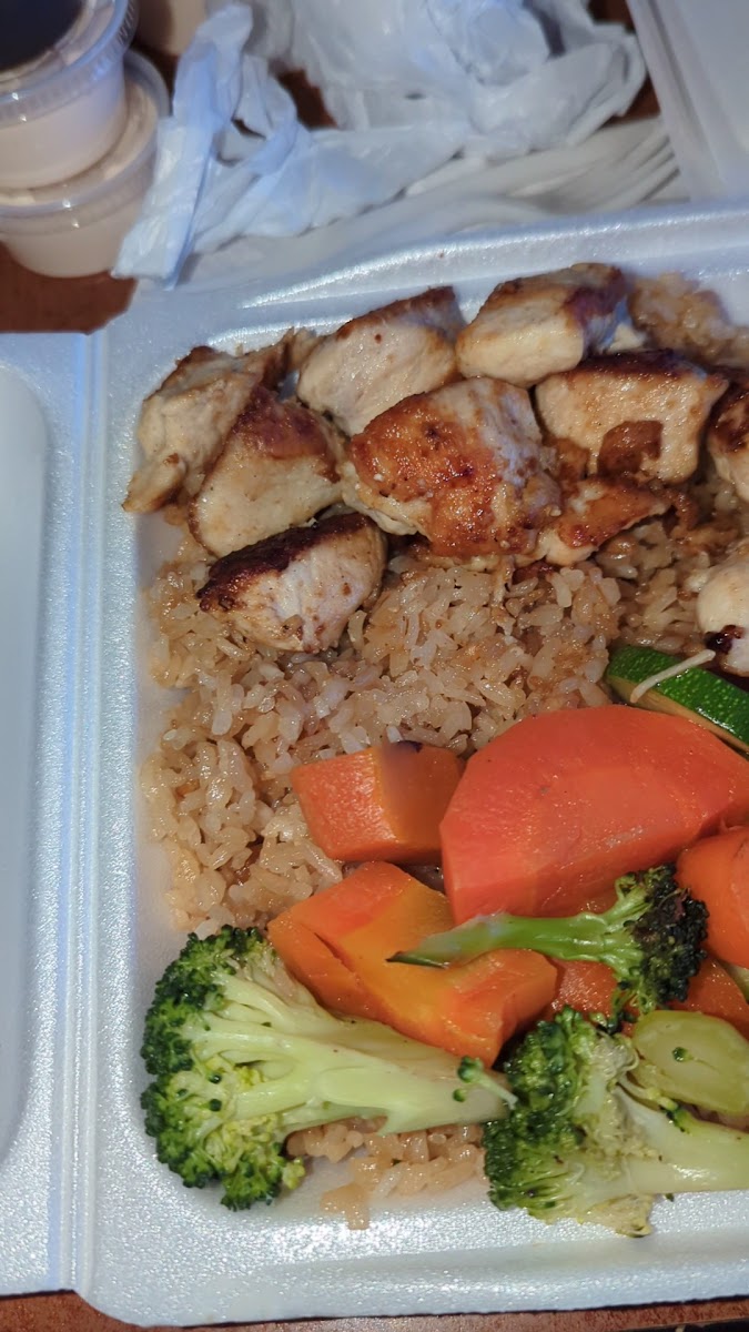 This was my first time eating here as I just moved with my fiancé, and the hibachi chicken and shrimp were really good and tasty. I barely have any left.
