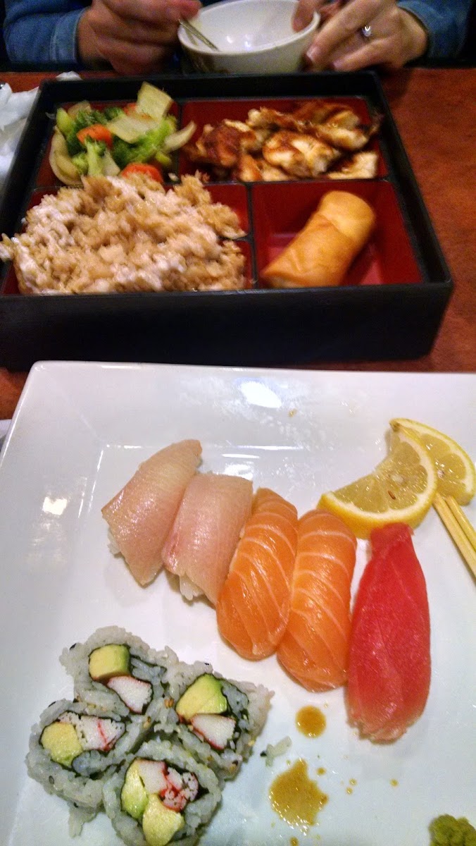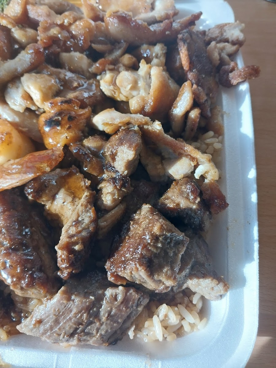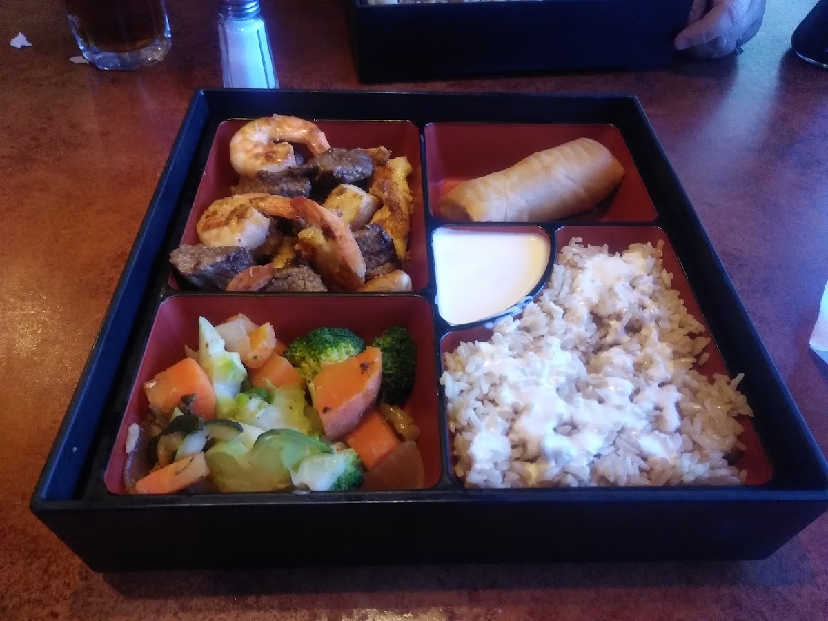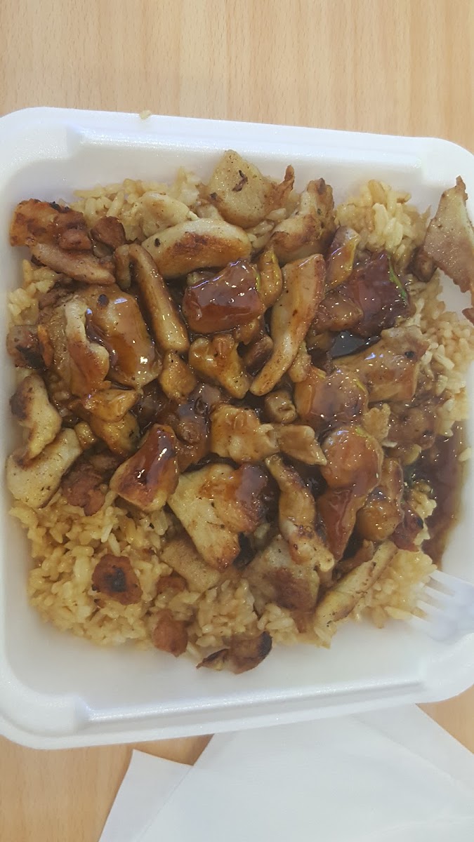 This was my first time eating here as I just moved with my fiancé, and the hibachi chicken and shrimp were really good and tasty. I barely have any left.