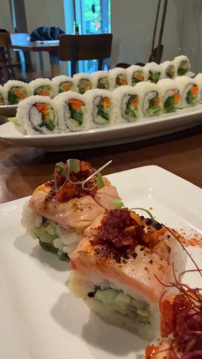 This place has great food! The only downside is that the seating is very close quarters. If the seating is full, good luck trying to get in as the wait could take forever. The restaurant seats only maybe 65 -70 people max. The menu is Huge, there are so many rolls to choose from. You have to read each roll to see if it's something you like. However, the service and wait for the food is less than 10 minutes after you order. Again, this is a great restaurant, however, just very small. I do believe that if want a custom roll they will make it for you. Some rolls like the snow crab naruto is smaller portioned than other Japanese restaurants. In all its a good Japanese restaurant with great sushi!
