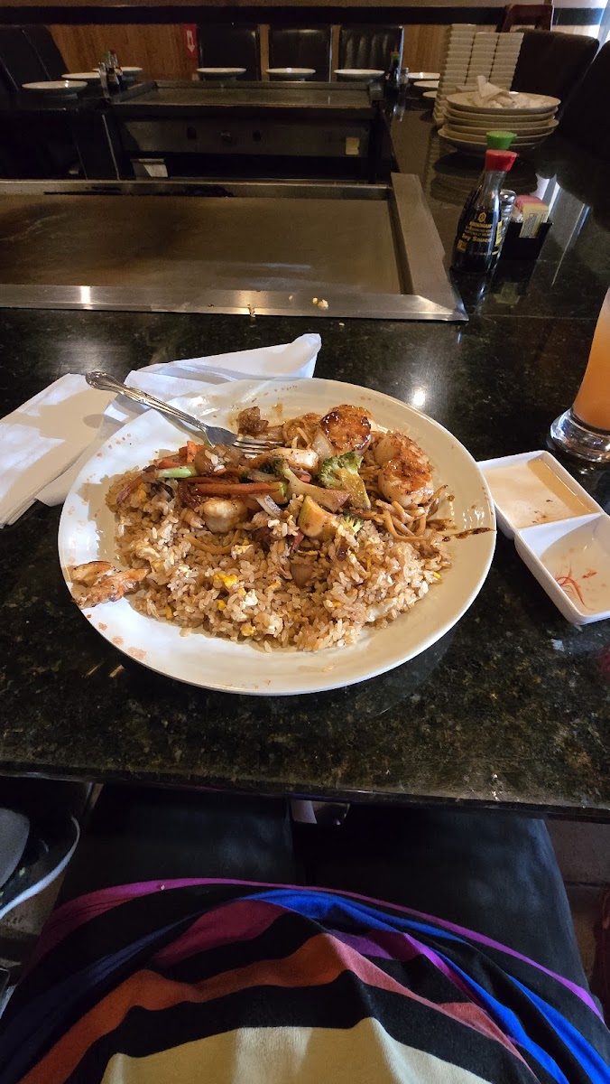 One of my better hibachi experiences! I really like that this place will allow you to split a hibachi between 2 people for just an $8 up charge. You still get a huge portion. That is a huge selling point at this location in my opinion. All of the staff we interacted with were very accommodating and efficient. Quick drink refills. Fasted chef I’ve had as well, if that is a plus for you. Mushrooms were flavorful and broccoli was fresh. Definitely not my favorite ginger salad; it could have used way less dressing and it’s not a good ginger dressing compared to others I’ve had. BEST ONION SOUP ever though!! Steak was cooked perfectly and filet mignon is not much more expensive. Noodles were good, rice was great. I’d also recommend the spring rolls- incredibly fresh and flavorful. I’d absolutely come back.