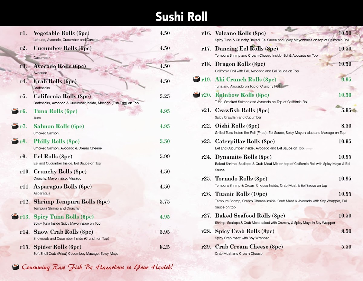 Spicy. Spicy tuna inside spicy mayonnaise on top. Consuming raw fish can be hazardous to your health!