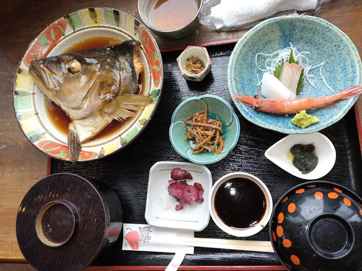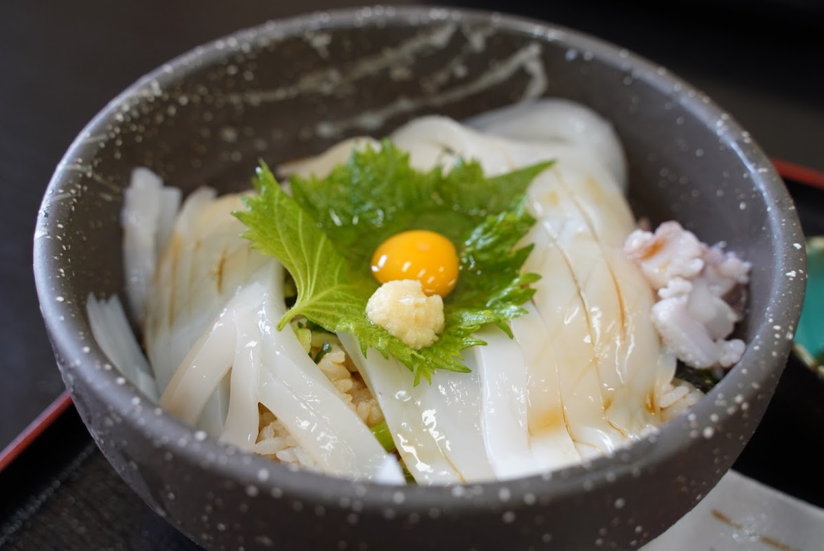 香美町は蟹で有名ですが、夏の白いかもオススメ! こちらのお店では活白いかをいただけます。 お造り、陶板焼、天ぷら、どれもとても美味しかったです。 とくにお造りはコリコリで甘くて最高でした! メニューは豊富で、1000円ちょっとで食べられる定食がたくさんありました。 隣のショップでは立派な蟹がお安く販売されていたので、蟹好きな方はぜひ覗いてみてください。