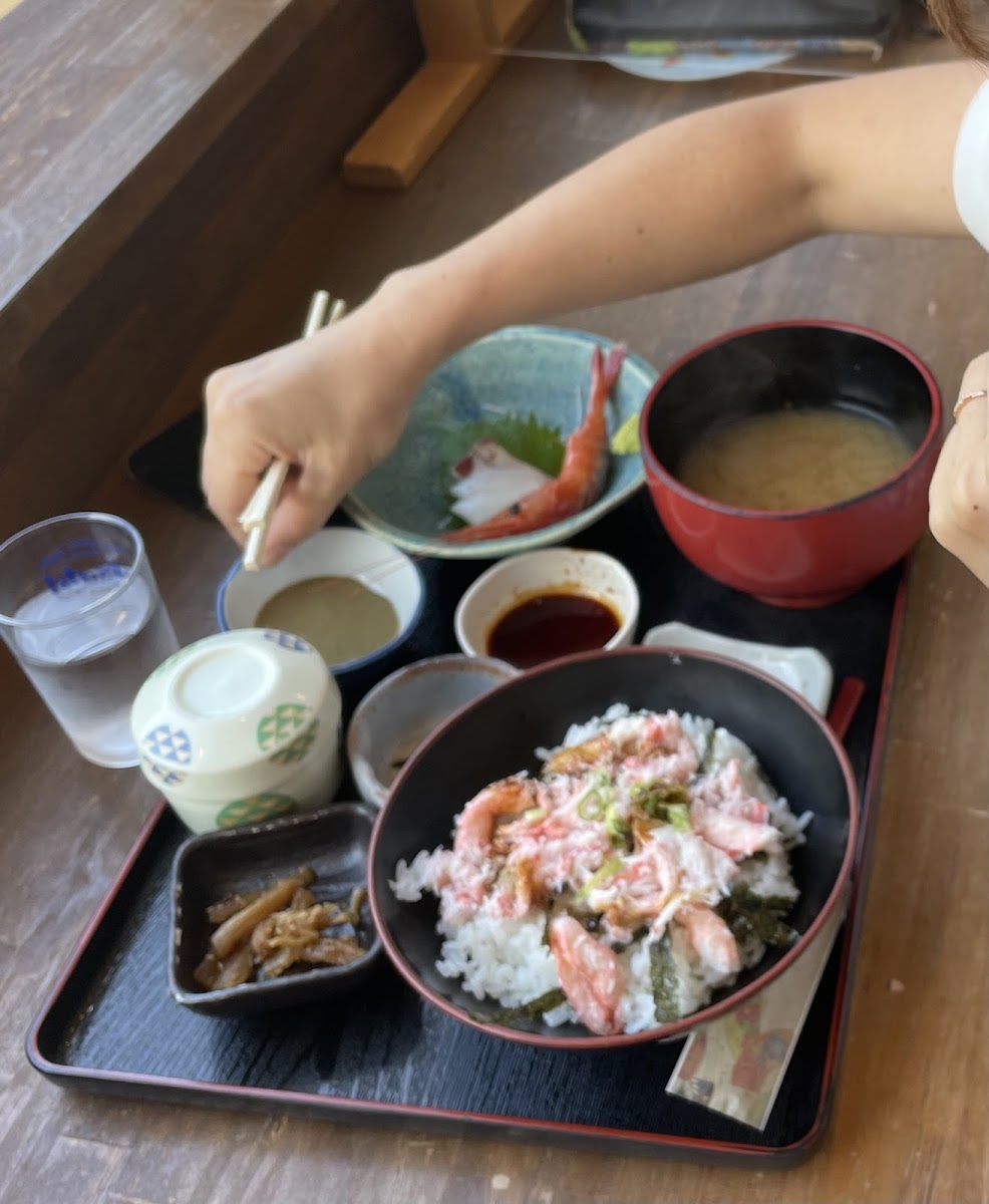 Food was excellent with fresh seafood and served with meso soup. One of the best meal at 1650 yen for kani n seafood don. Worth the value and time. Only serve lunch.