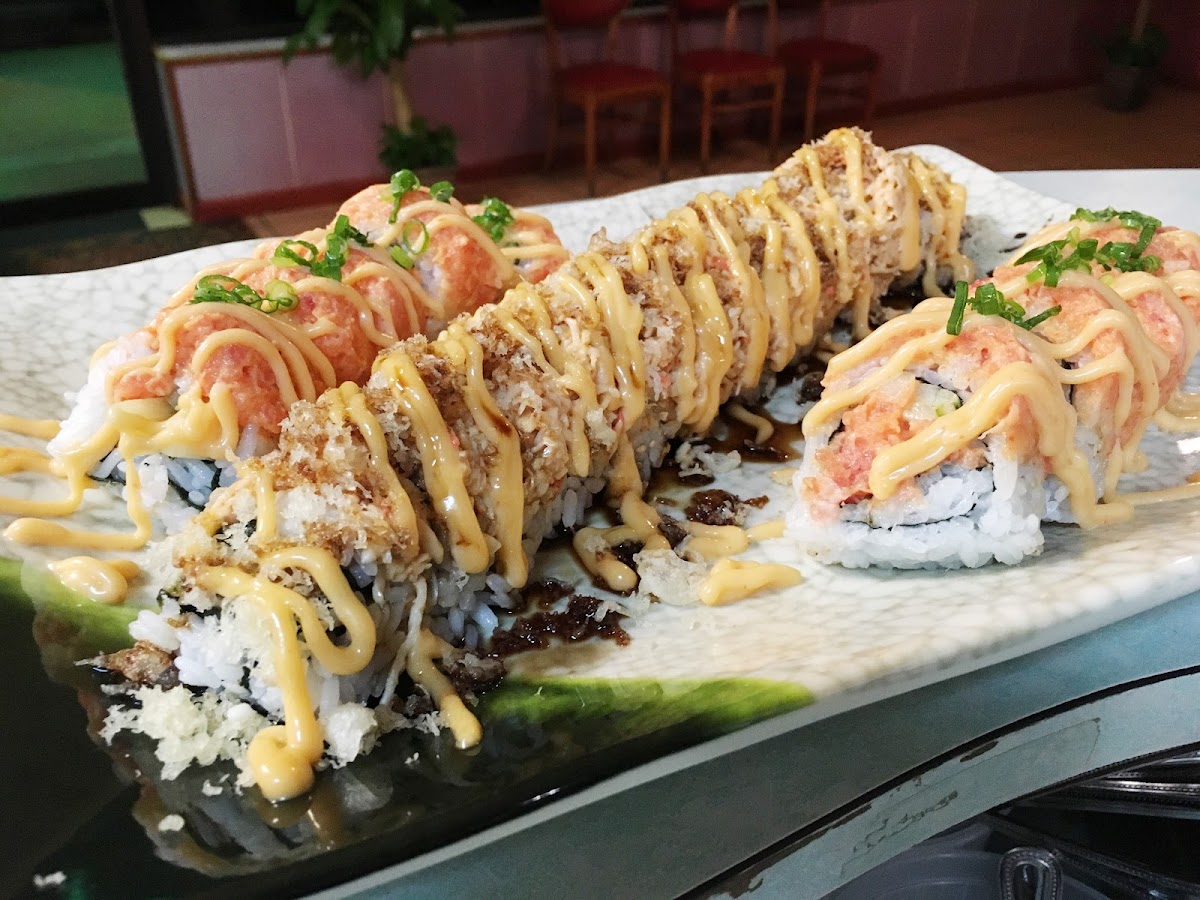 Sakura Cafe is a Japanese restaurant located at 7357 Theodore Dawes Rd in Theodore, AL, boasting 182 reviews. The café sees peak wait times of up to 15 minutes Mondays from 8:30 AM to 2:00 PM and Thursdays from 10:00 AM to 1:30 PM, while Fridays through Sundays remain unbusy. Their menu showcases a variety of sushi and Japanese dishes including Dragon Roll, Chicken Katsu, Teriyaki Chicken, Spider Roll, and Roll Tide Roll, offering a diverse selection for Japanese cuisine enthusiasts.