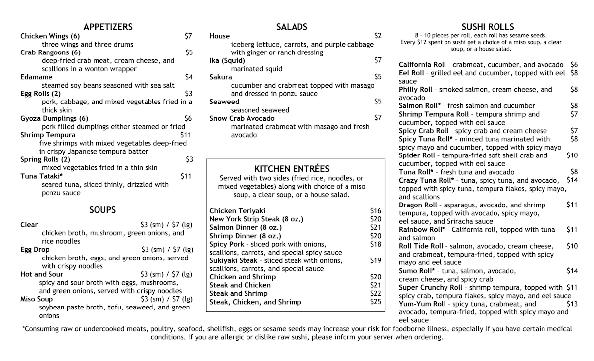 Sliced steak with onions, scallions, carrots, and special sauce. Choose a side: Clear Soup, Miso Soup. Choose a style: Noodles, Mixed Vegetables.