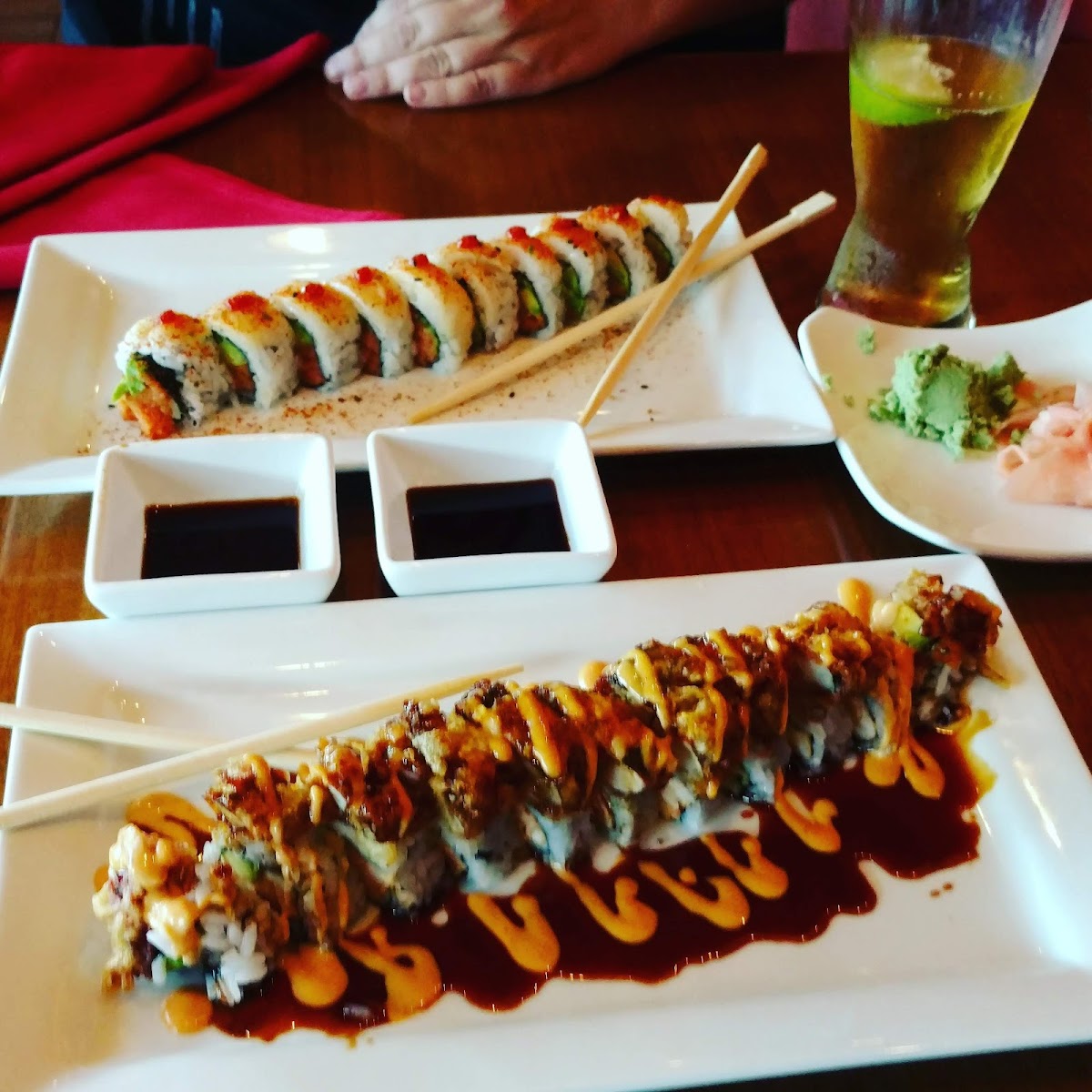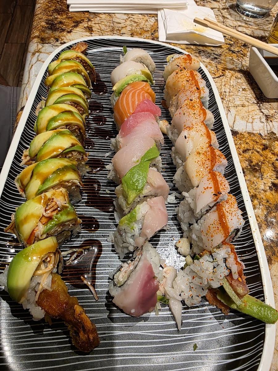 Delicious food. If you're there for sushi definitely sit at the sushi bar. If you're lucky you'll have Sonny be your sushi chef!! He's amazing!! The only reason for the 4 stars on service and atmosphere is the young ladies they always put at the check in podium. They are always very frazzled and unorganized. Seem very overwhelmed no matter how slow or busy it is. Besides that the place is phenomenal!!