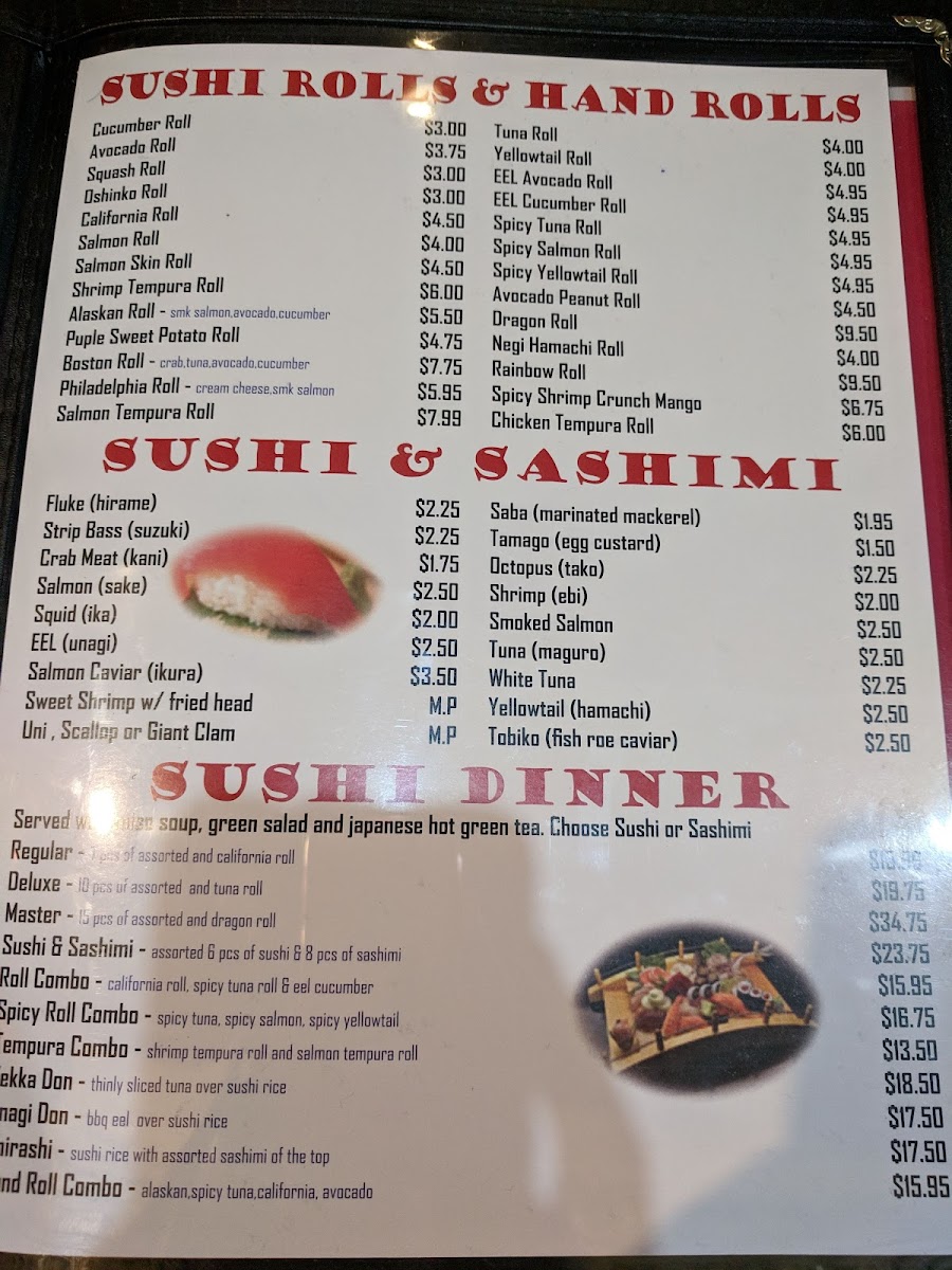 Alaskan, spicy tuna, california avocado.