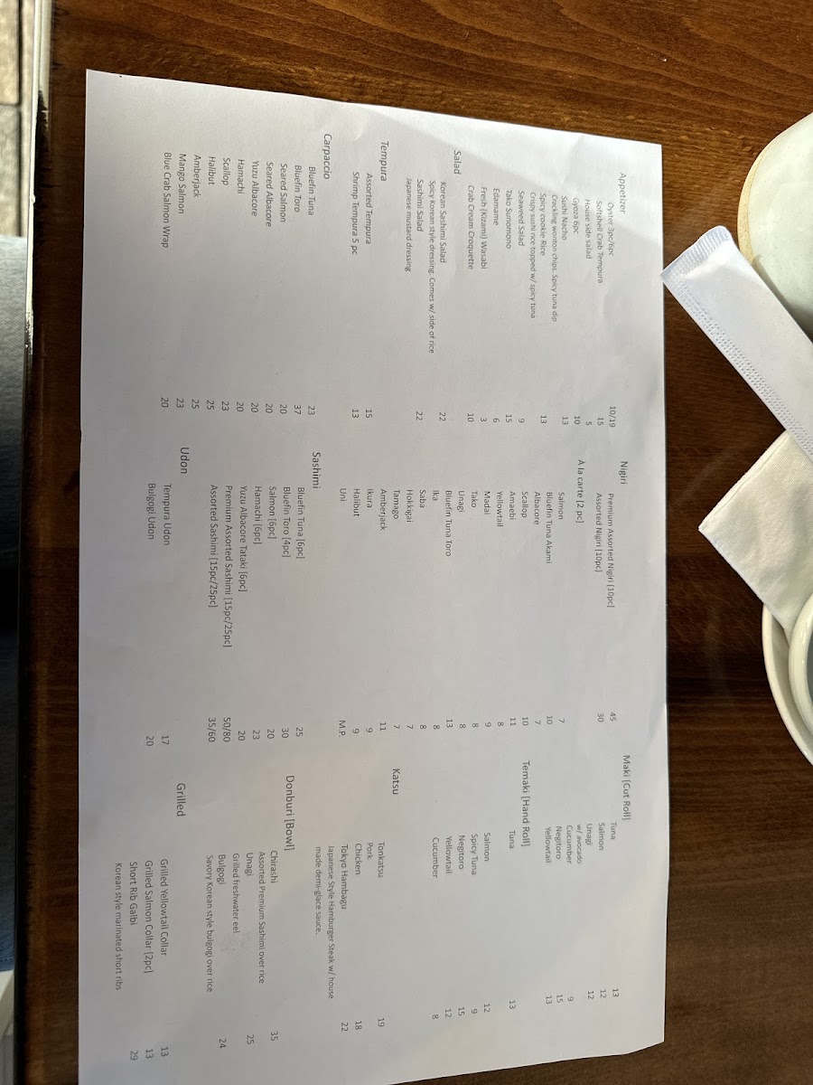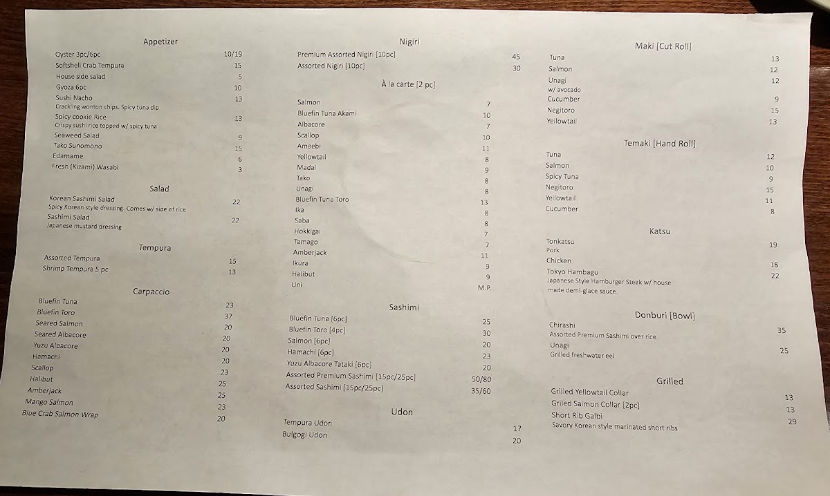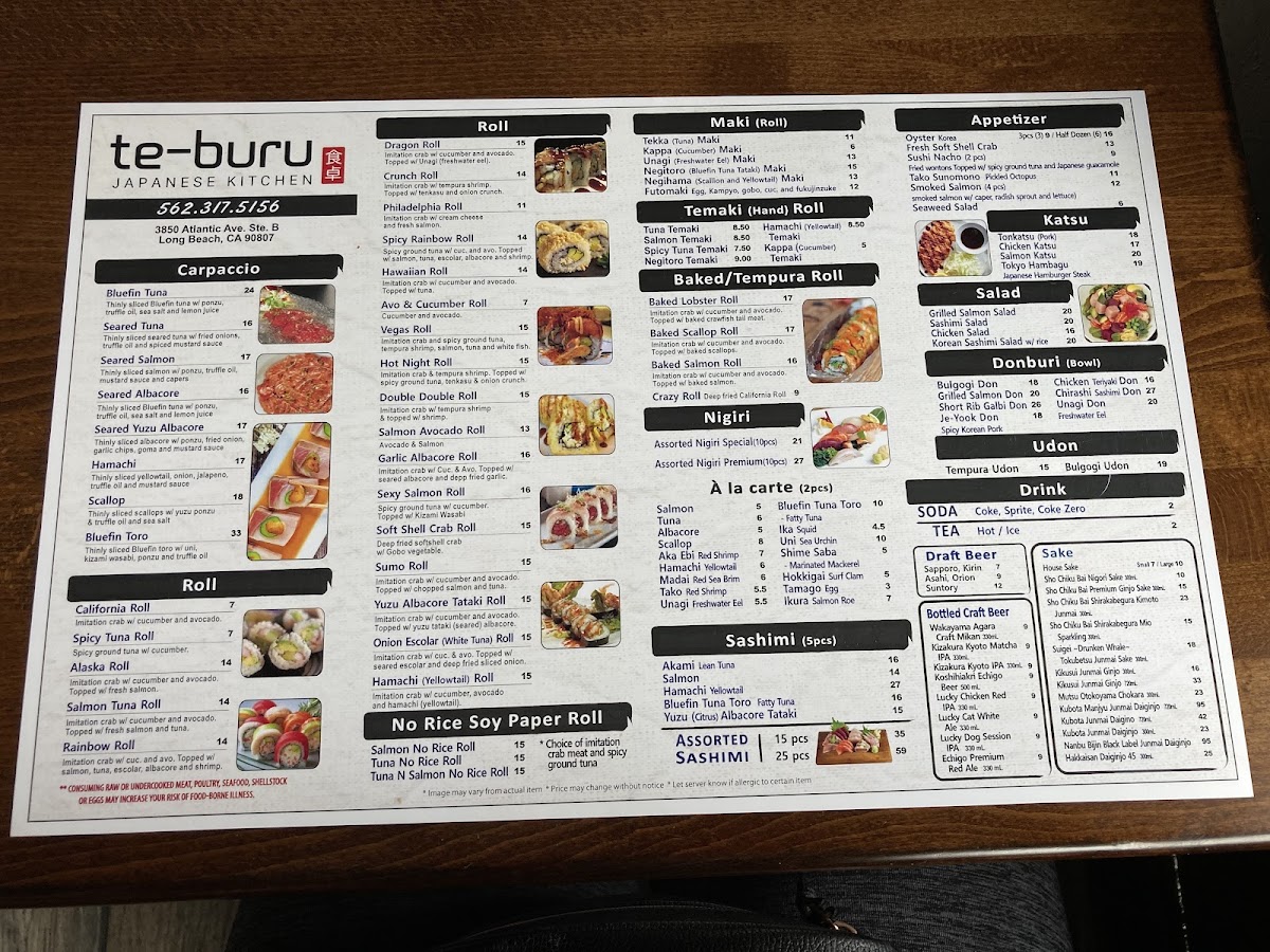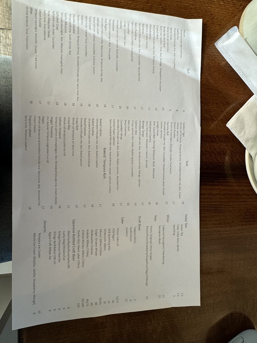 Blue crab. Salmon. Tuna. Avo. Masago. Wrapped in soy paper