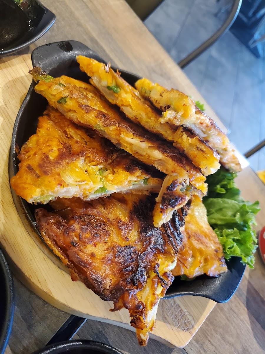 First time here. Great service and food. Restaurant and silverware was clean. All the food and side dishes were delicious and honestly felt fresh. Had the hot stone bibimbap, potato corn dog, korean corn dog, kimbap, and passionfruit iced tea.