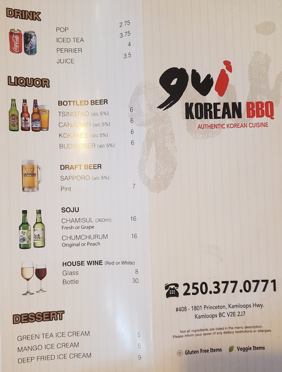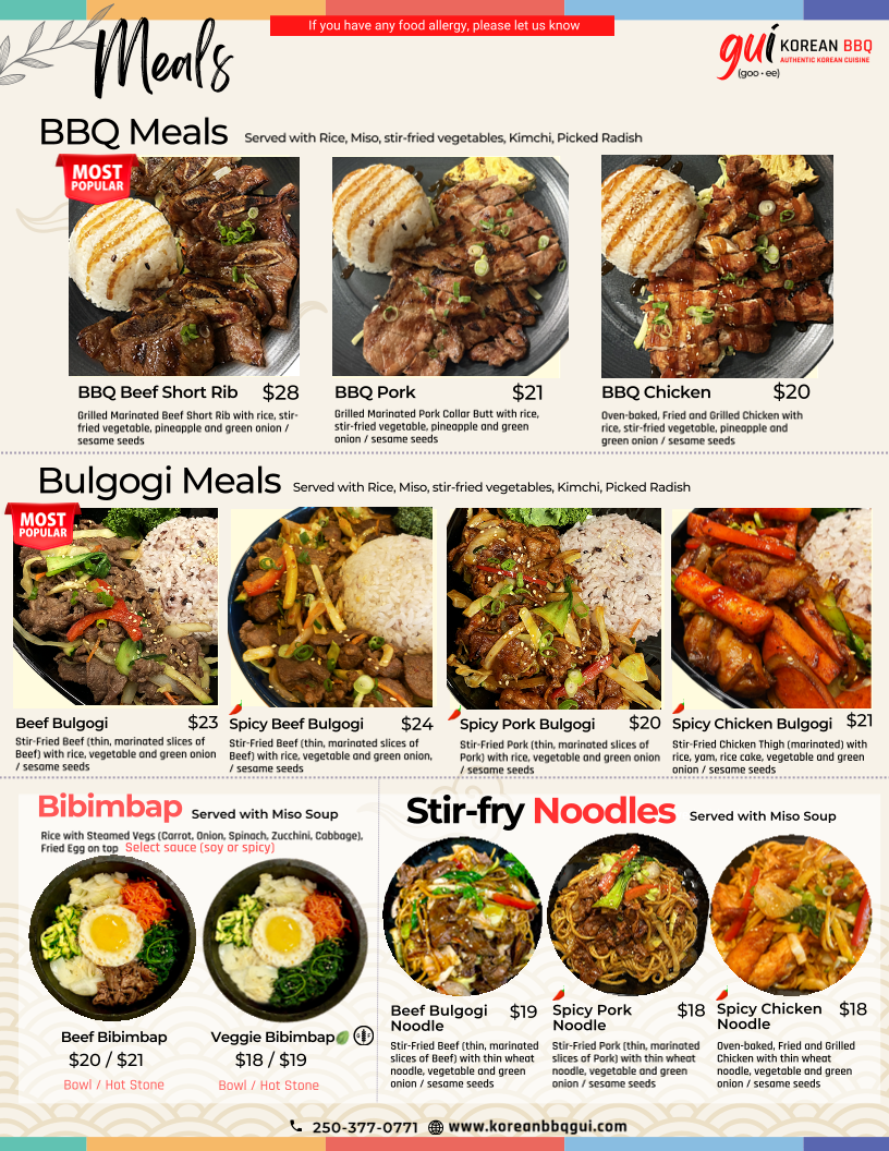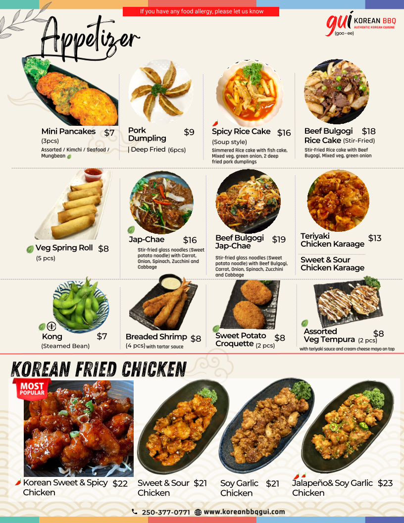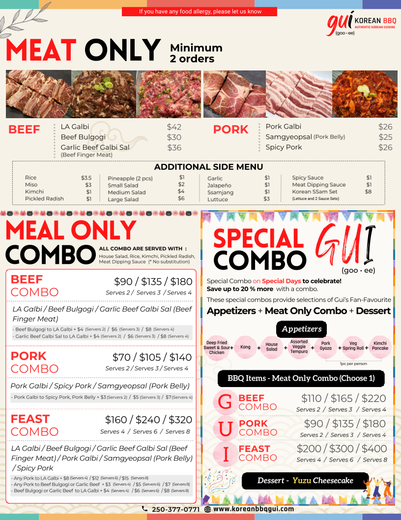Korean Bbq Gui Menu