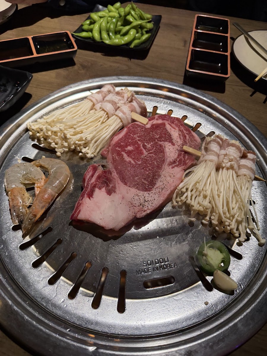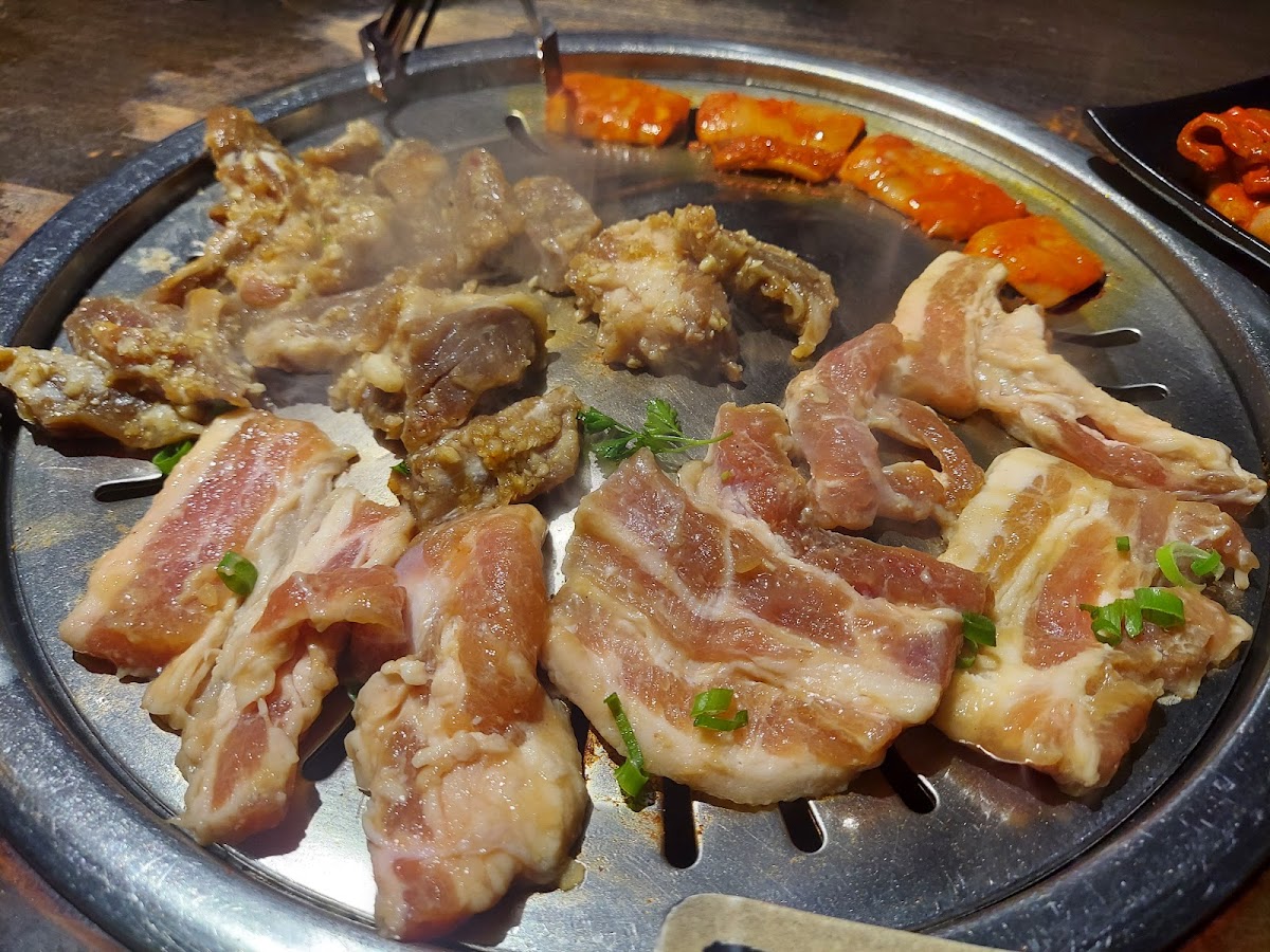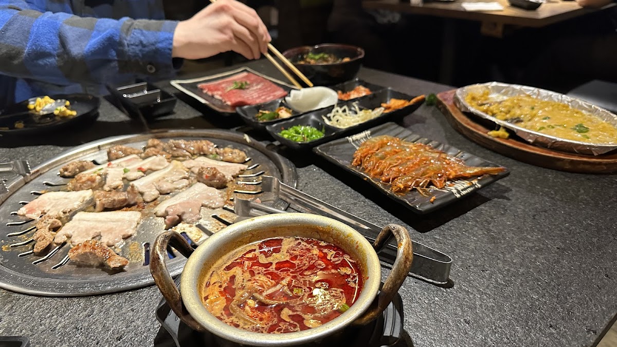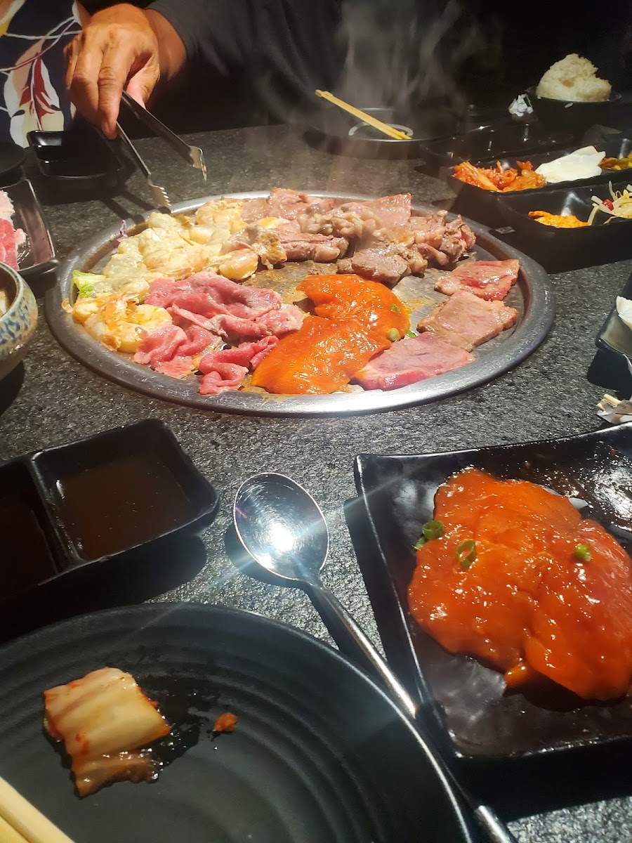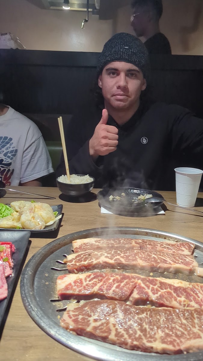 A great local spot for AYCE Korean BBQ with high-quality, not frozen meats which makes all the difference. We especially loved the pork belly wrapped enoki mushrooms and the cucumber kimchi from the generous spread of sides. Our server was fantastic (she had a flower in her hair wish I remembered her name!) and struck the perfect balance between attentive and chill. Drinks stayed full, grills stayed hot. Bonus: it’s right next to 85°C Bakery, so you can grab a sweet treat on your way out. We’ll definitely be back.