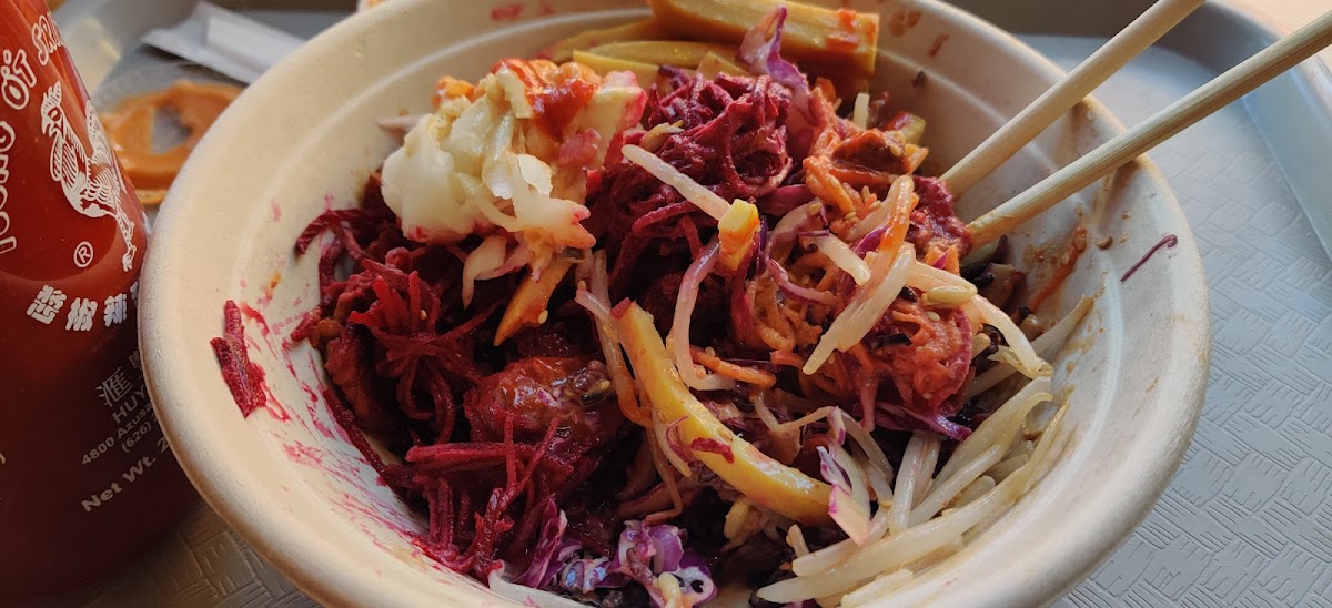 We always come here when we are in the area. Everything is so good! Chipotle style of service where you make a bowl and pick everything you want on it