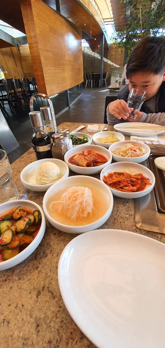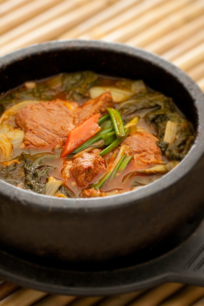 Unlike most KBBQ restaurants, Chosun Galbee is not "all you can eat" (AYCE), but you will walk away full, satisfied, and won't smell like KBBQ. The prices here are on the higher side, but the meats and prepared food are really good. You are also served a large selection of banchan and each was fresh and flavorful. The thinly sliced beef brisket, bulgogi, and short ribs were great, but the standout for me was the Yukgaejang. It's a soup, consisting of a spicy red broth, glass noodles, vegetables, and beef. It's spicy, but doesn't burn or linger. One bowl can be shared with up to four people, or will make a hearty meal by itself. As I mentioned, the prices can sneak up on you, the staff is super friendly, and the place is clean. Parking is valet only and cost $3.