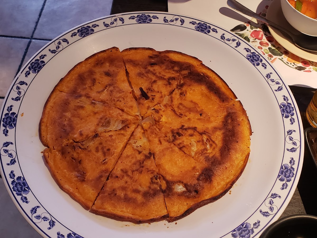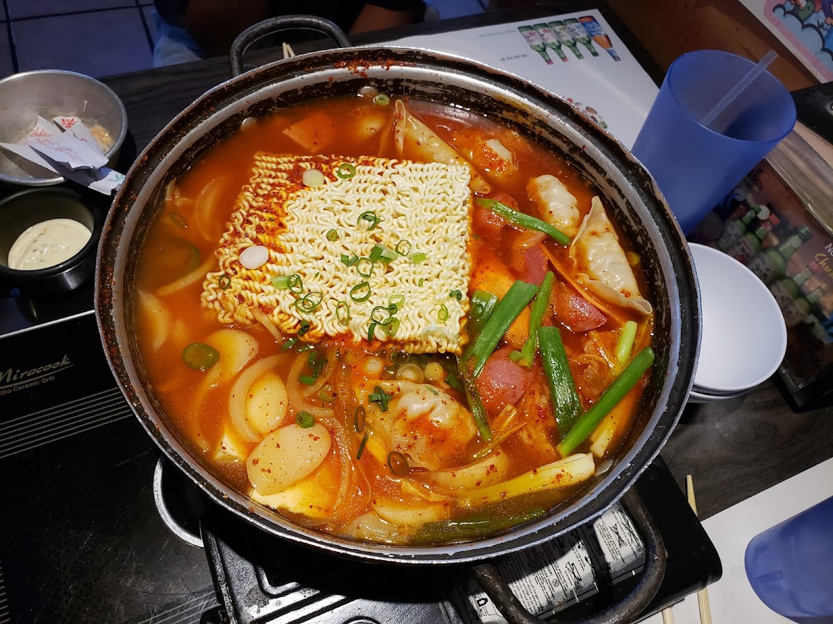 We ordered the army soup, fried chicken with sweet chili sauce and kimchi pancake. The chicken was hot and crispy with a fair portion, the kimchi pancake was packed with kimchi and the army soup was flavored nicely. I think it could've used a few more slices of hot dog and spam but overall was good. Great atmosphere and staff was friendly. I'll visit again!