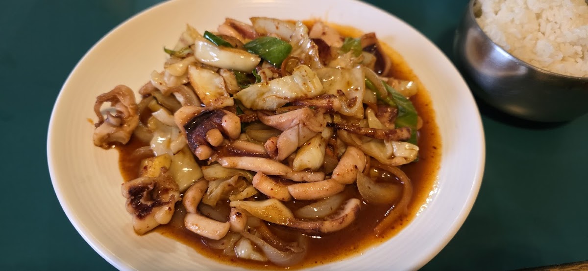 I had the bulgogi and my husband had the spicy pork. It was good. It also came with 3 dumplings chicken I believe. I had white rice my husband had fried rice. It came with the vegetables on the side they were a little spicy so if you dont like spicy you may not like them. I like spice so it didn't really bother me. Overall it was a good experience. Service was pleasant.