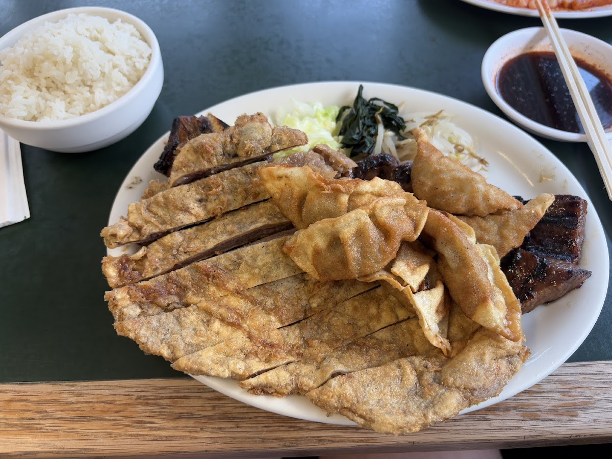 Oh my word!! This food was the best!! I'd have to say it was my personal favorite on our visit to Hawaii. Our entire family loved everything. We dined in for lunch on our last day and the service was fantastic and the staff was friendly. My son cannot eat any dairy and everything on their menu is dairy free. In addition, the portions were huge. I couldn't finish mine and everyone else left completely stuffed. In comparison to what we spent on other meals on the Island, the pricing was a great value, especially considering the amount of food they brought. They brought out a huge serving of two separate kinds of Kim Chee and both were incredible. If you're in the area you should definitely check this place out! We tried shrimp and would recommend the katsu, BBQ pork, BBQ chicken, fried and steamed dumplings, Tonkatsu, rice, soup, shrimp katsu and the amazing Kim Chee