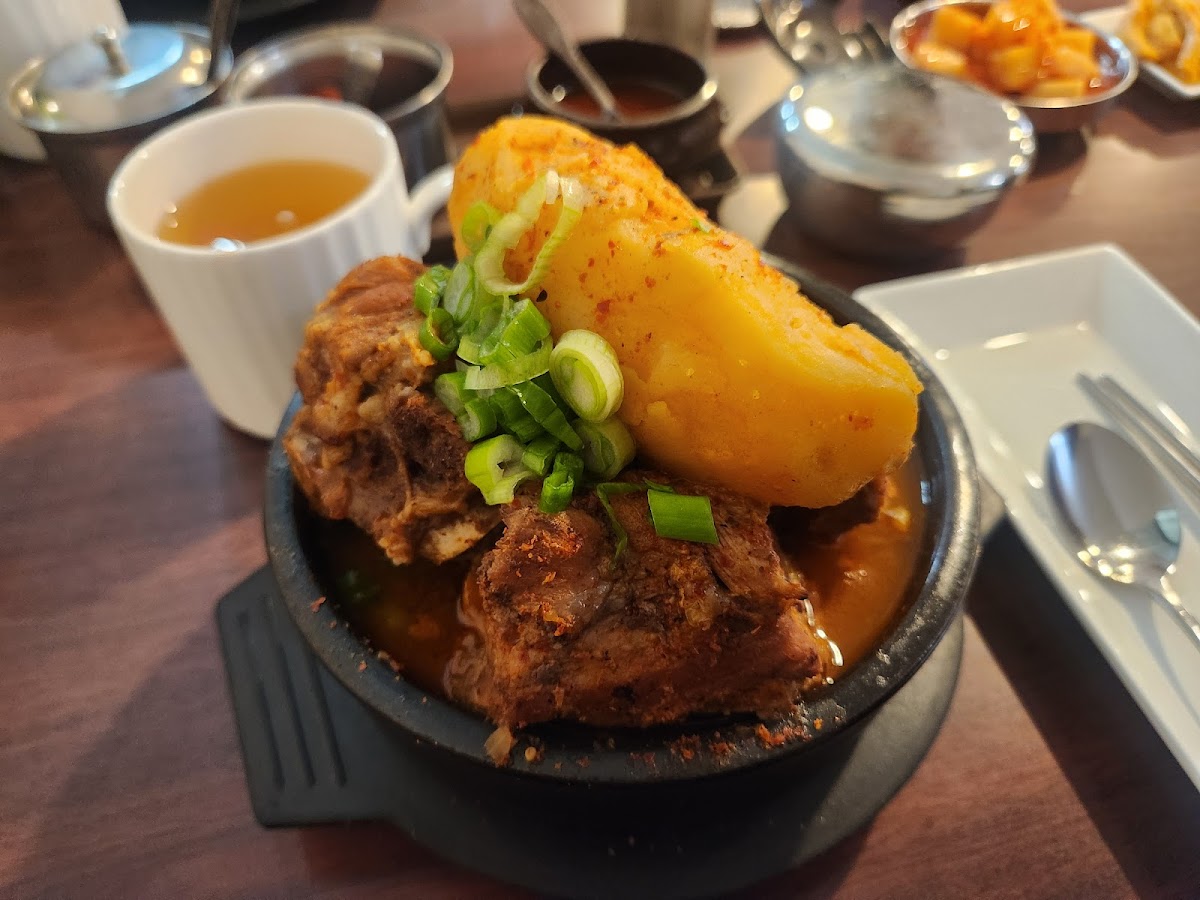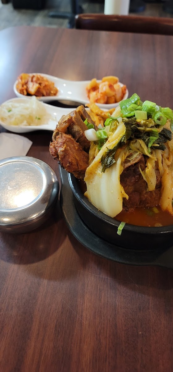 We were really craving Korean soup and this place was on the list. It’s located near the industrial area so I was surprised it was tucked away in a non restaurant area. The ambiance was nothing spectacular. There aren’t too many seats, however, food comes fairly quick. The service was great. They refilled water often and were very friendly. We ordered Seolleong Tang for the kids which they really enjoyed. Lots of protein and the soup was flavorful. We ordered the Gamja Tang and Budae Jjigae. The Gamja Tang which had a lot of big bones with lots of meat. The Budae had tons of flavor in the broth. The food here is amazing! While there aren’t many things on the menu, everything they made was tasty and made right. I highly recommend this place if you’re craving for soup.