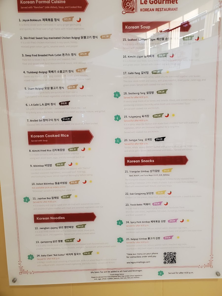 Deep-fried sliced pork cutlet with rice and 5 traditional Korean side dishes that will change weekly.