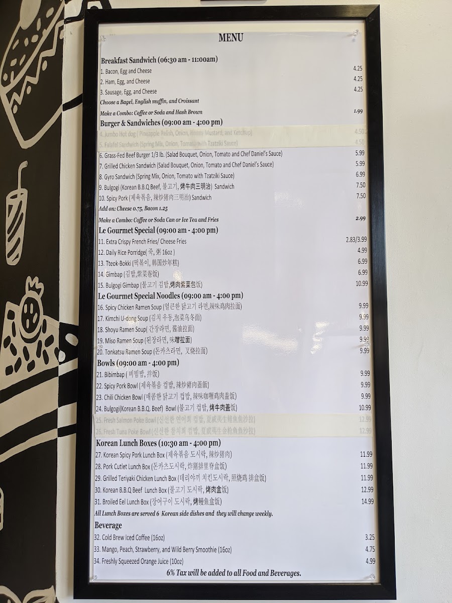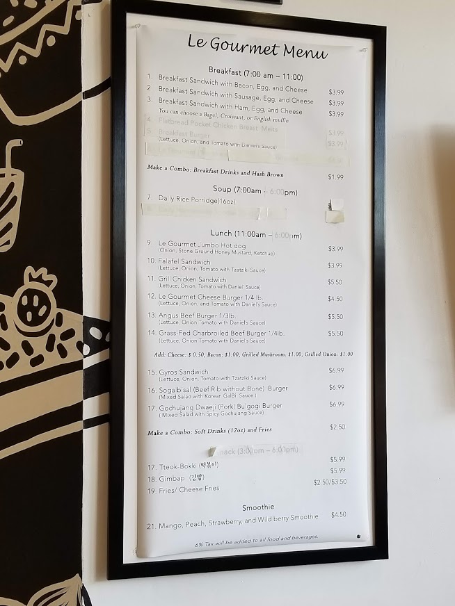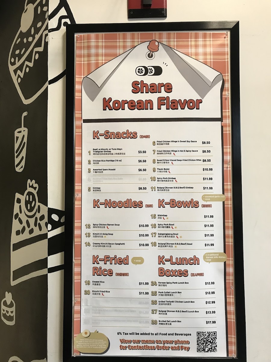 Triangle shape is seasoned rice roll filled with Bulgogi, or Kimchi, or Tuna mayo, wrapped with a seaweed strip.