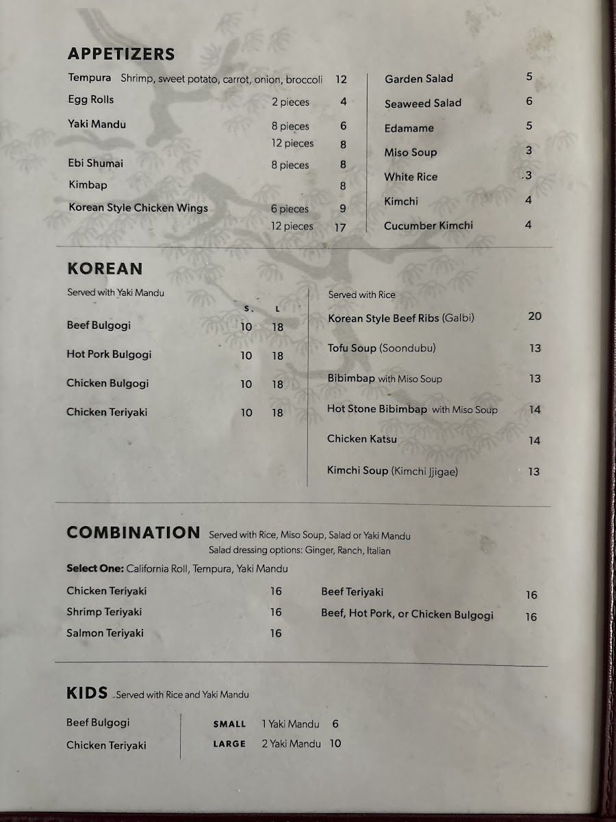 Narita still only does take-out in the evening, so I ordered the Beef Bulgogi, Bibimpap, Yaki Mandu and an order of Kimchi. Everything was very fresh and delicious! So excited to discover a place in town that serves such high quality. Many of the other reviews have said that the prices are expensive. Everything I ordered, with tip came to $40. I think that's a fair price for what I received.