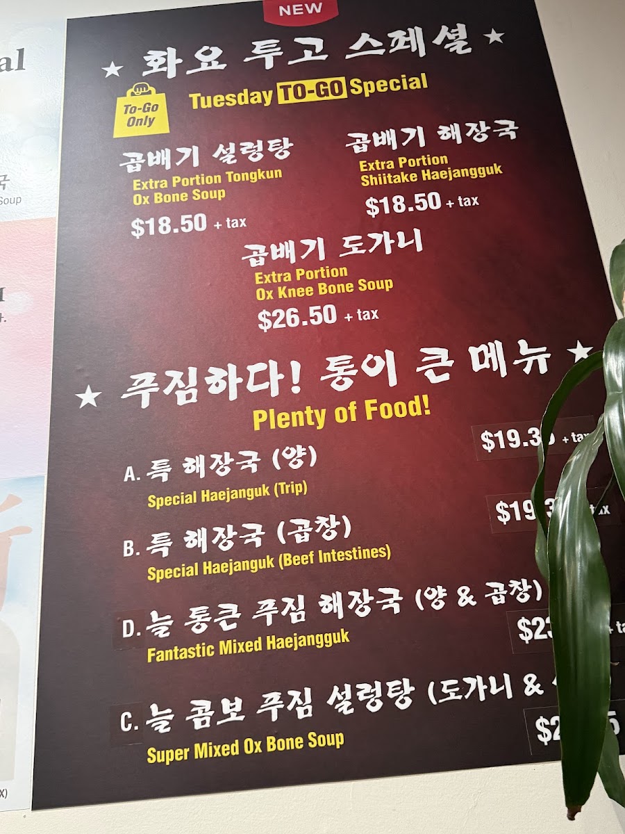 House-made ox bone broth with assorted meats (i.e. tripe and cow tongue)