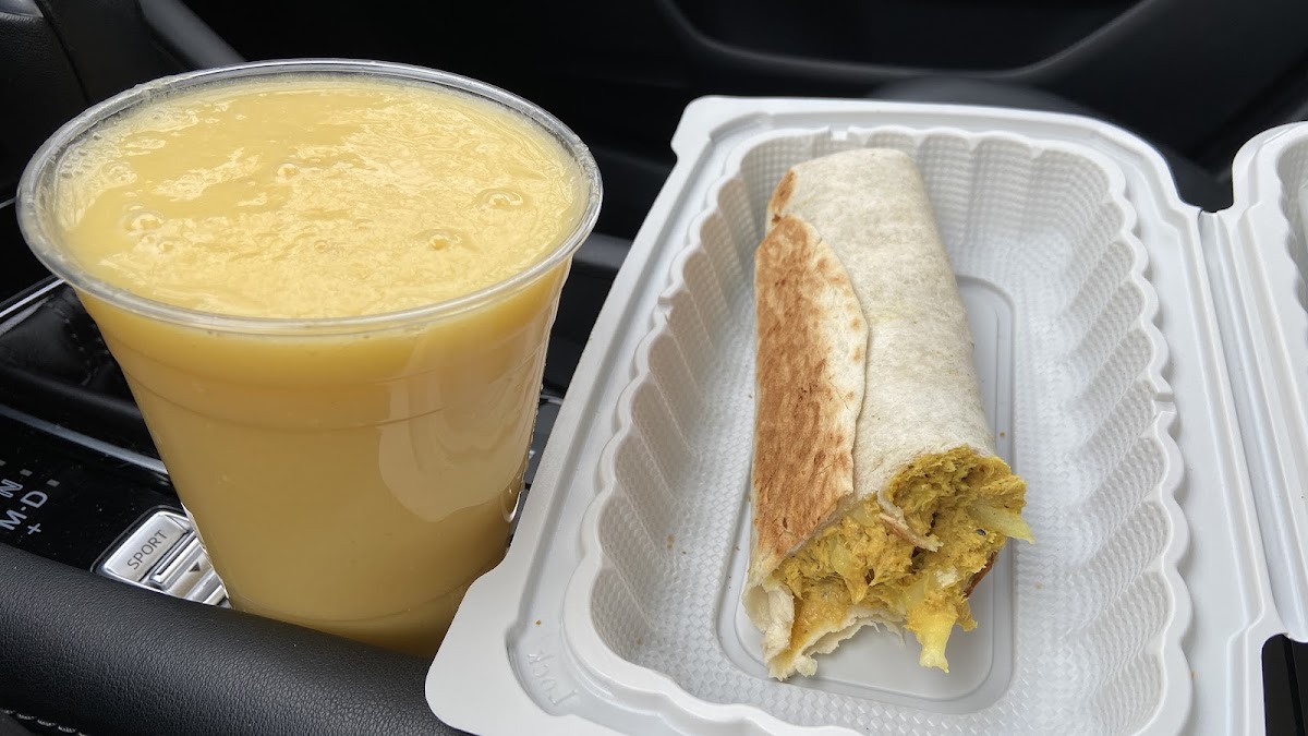 I give 5 for the food but for service 3 I had Mango natural Juice and chicken Burrito all delicious They very slow on service but Taste on food was amazing They need someone to speak English in this place