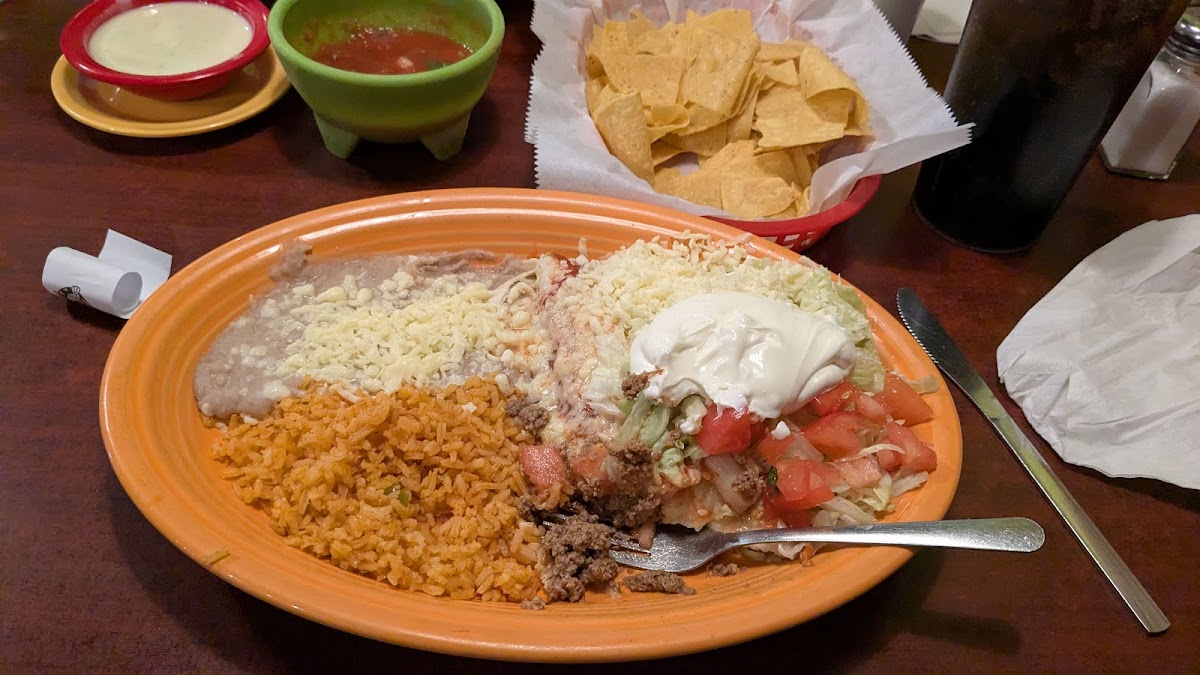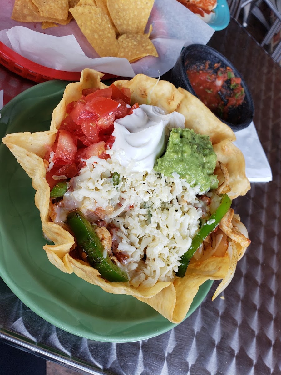 Great place for a Sunday brunch. You definitely get what you're paying for with the immense amount of food that is served. Each time we have visited we take home leftovers. Today we enjoy the taco salad with everything in it. And the arroz con pollo. Muchos gracias El Camino!