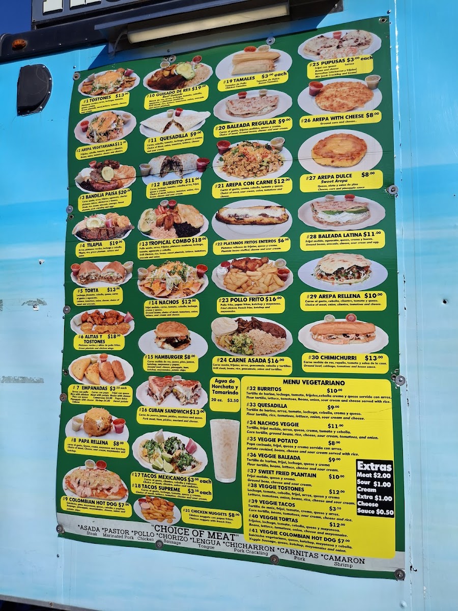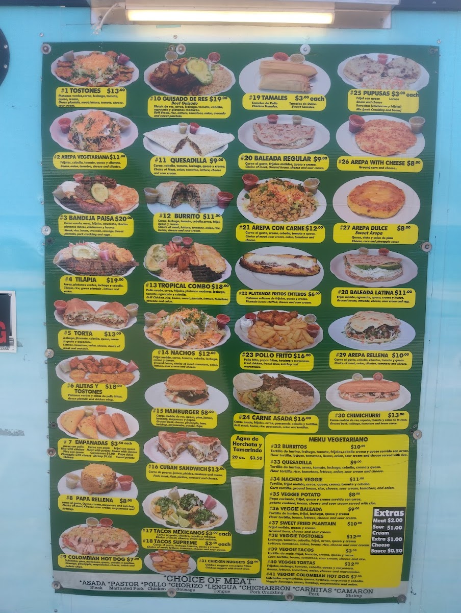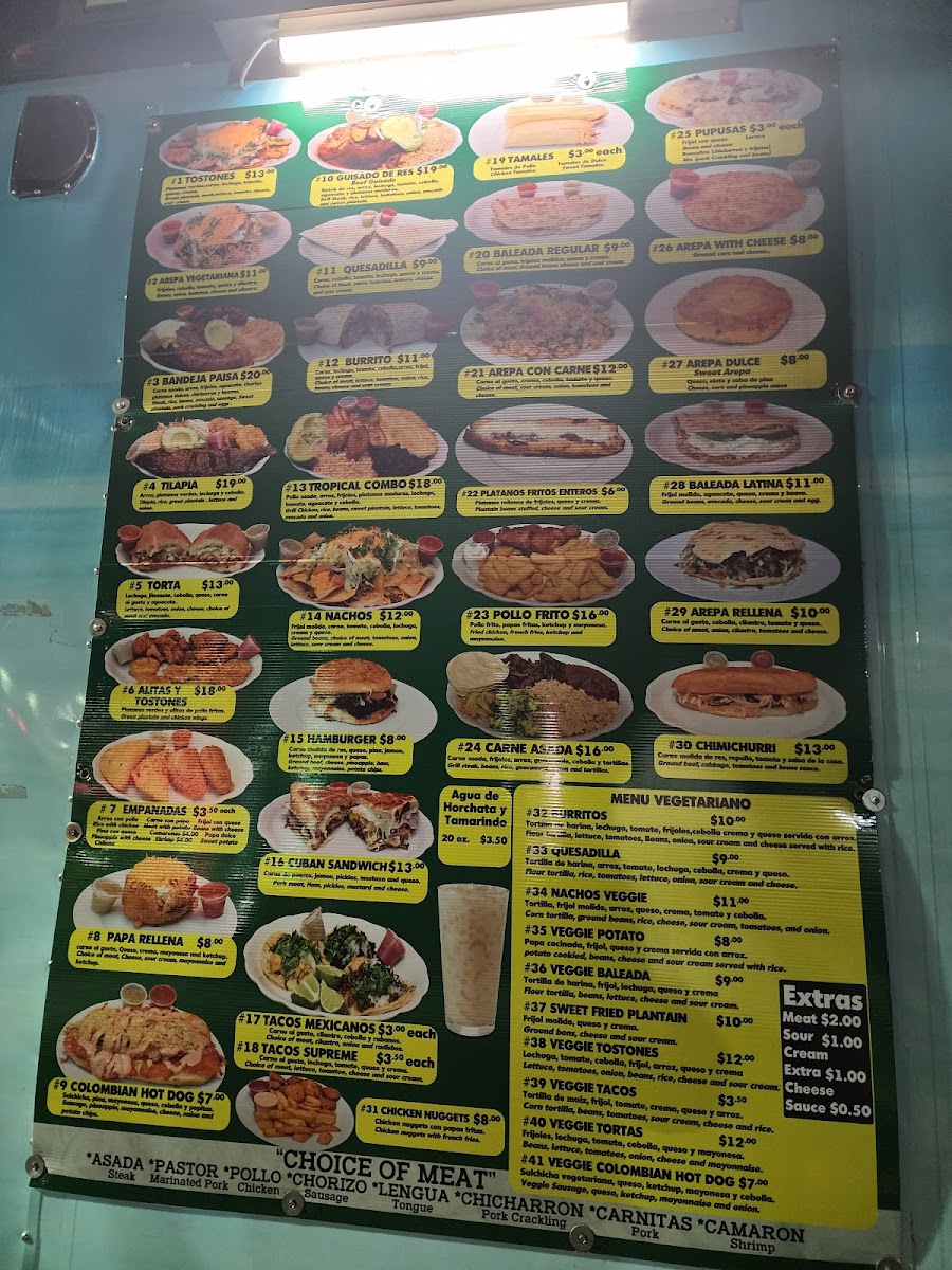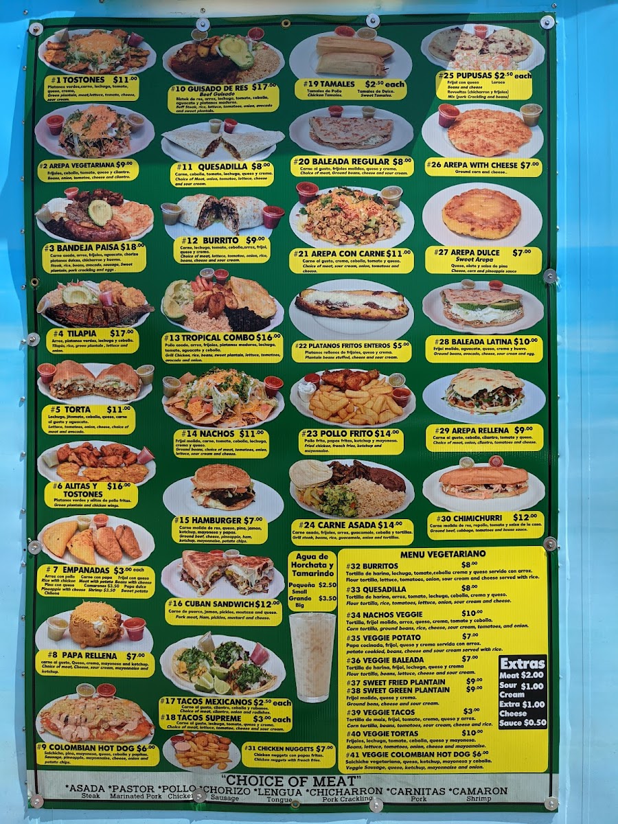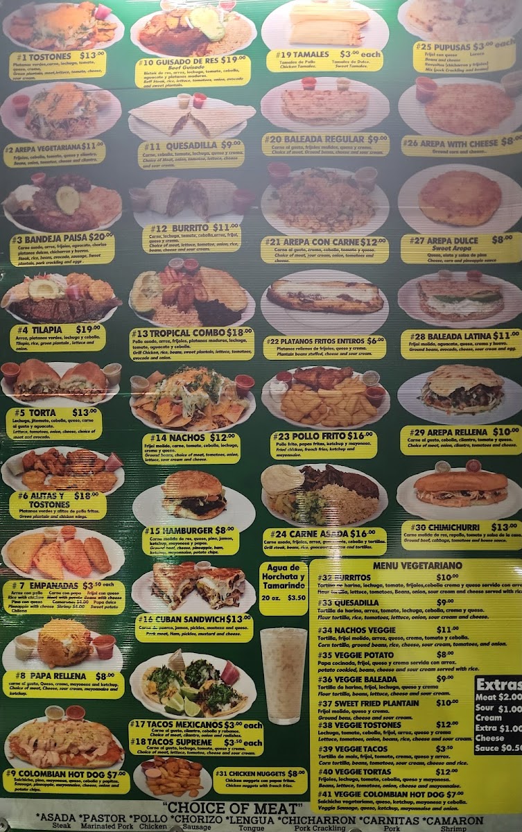 Platanos verdes,carne, lechuga, tomate, queso, crema, Green plantain, meat,lettuce, tomato, cheese, Sour cream.