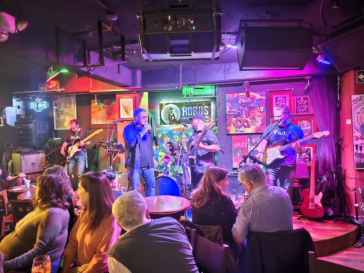 **Hobos Bar - A Haven for Live Music and Lively Atmosphere** Nestled in the heart of the city in San Angel, Hobos Bar is a hidden gem for those seeking an unforgettable night filled with live music, vibrant energy, and unparalleled hospitality. From the moment you step inside, you're enveloped by the cozy ambiance, welcoming you to immerse yourself in an evening of pure enjoyment. The highlight of Hobos Bar undoubtedly lies in its live music bands, which consistently deliver electrifying performances that keep the crowd on their feet. Whether you're a fan of blues, rock, or jazz, there's something for everyone to groove to. The stage comes alive with talent, setting the perfect backdrop for an evening of dancing and singing along to your favorite tunes. What truly sets Hobos Bar apart is the warm and inviting atmosphere fostered by the owners, Gustavo and Monze. Their passion for creating memorable experiences is palpable, as they personally ensure that each guest feels right at home. Gustavo's attentive service, coupled with Monze's charm, adds an extra layer of hospitality that leaves a lasting impression. Moreover, the attentive service provided by the staff, including waiters David and Alejandro, elevates the overall experience. With their promptness and friendly demeanor, they anticipate your every need, allowing you to relax and fully immerse yourself in the festivities. Whether you're stopping by for a casual drink or looking to let loose on the dance floor, Hobos Bar offers an unforgettable night out. With its great live music, fun atmosphere, and impeccable service, it's no wonder why this establishment has become a beloved favorite among locals and visitors alike.
