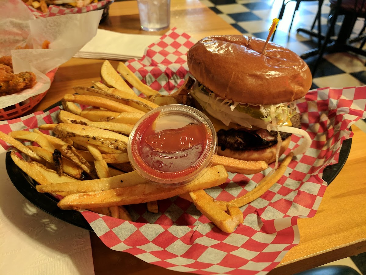 A great family owned and ran spot. The wing sauces are unique and very good. The wings were crisp and tasty. The burger was enough to feed two people.
