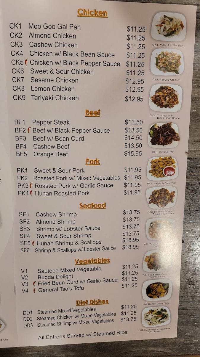 (Broccoli, snow peas, water chestnuts, mushrooms, carrots, celery, baby corn & zucchini in special hunan sauce) hot & spicy (upon request, the degree of spiciness will be prepared as desired.)