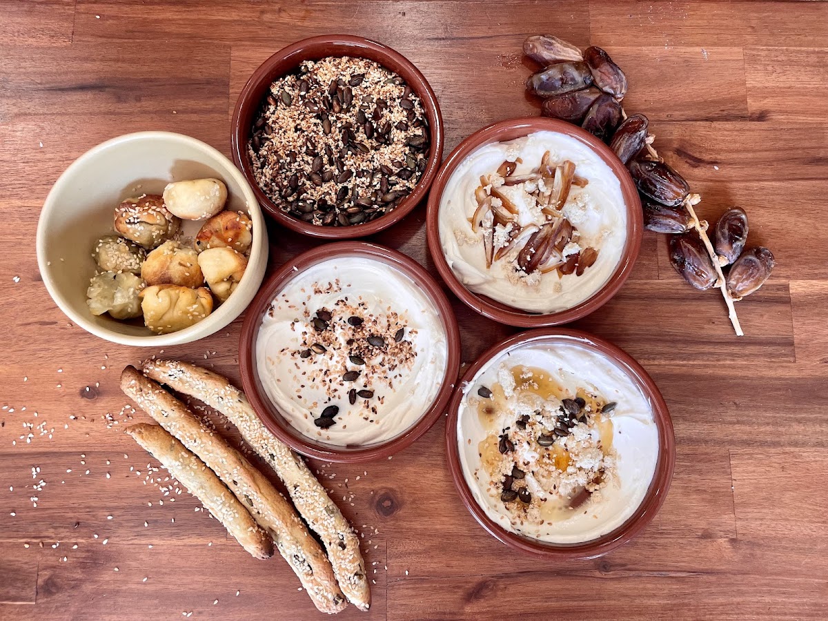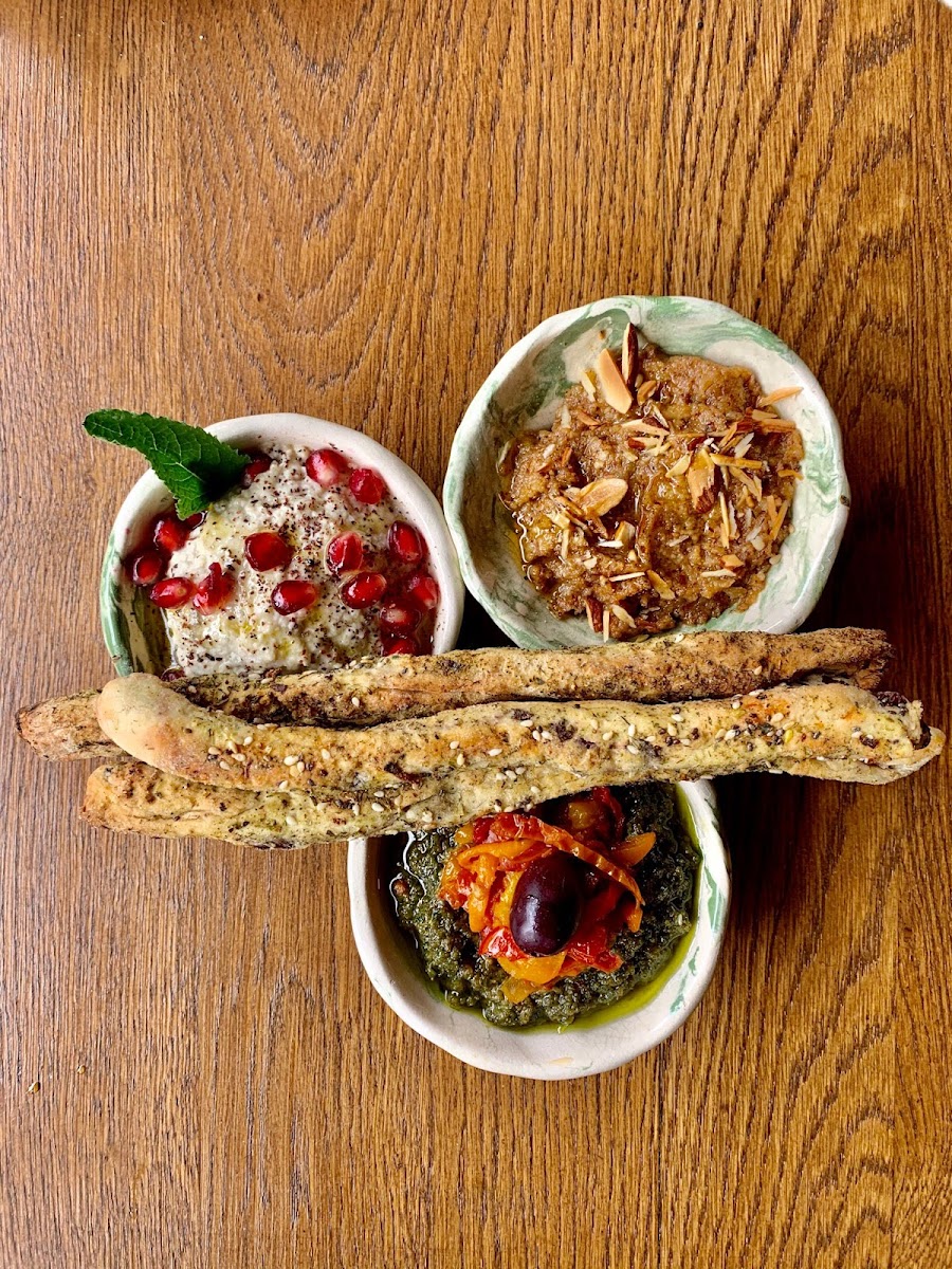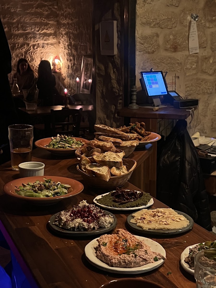We ordered the pack hummus, moutabel, fooie, etc plus beignets de Chou-fleur with some wine cups. The food was great and the ambient was excellent. Recommended.