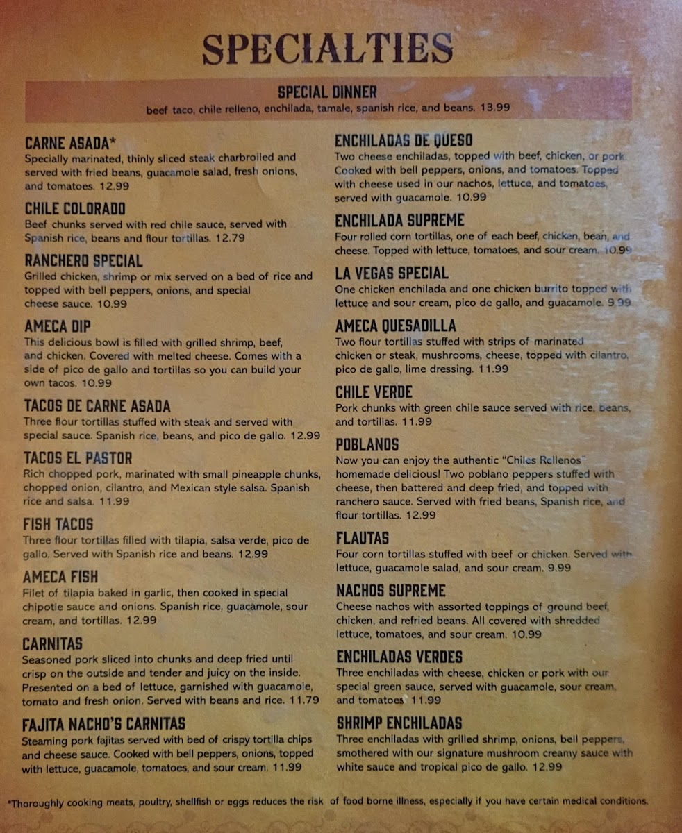 We try to dine on at least once a month. The customer service is always greeting the customers as always. The food is very tasty. My favorite dish is the ameca steak meal. I'm pleased .