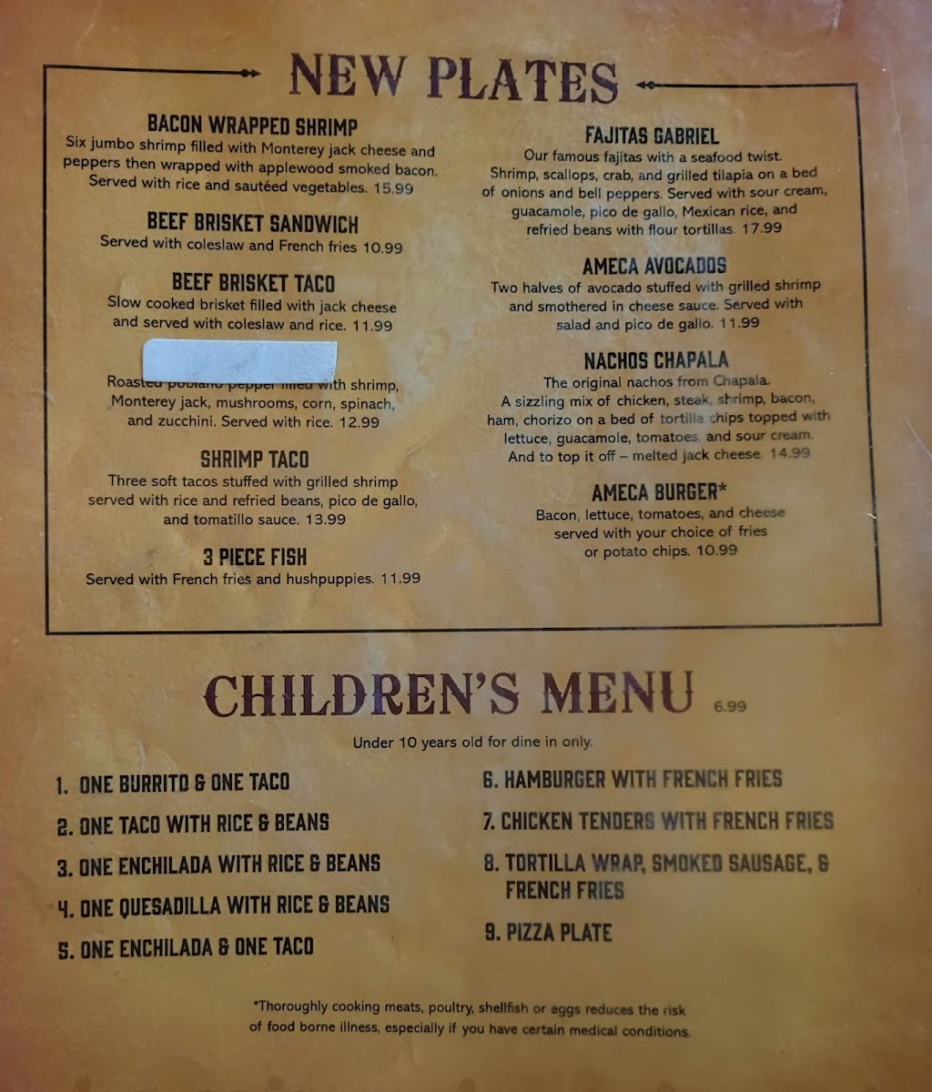 Ameca is a Mexican restaurant at 1836 S Whitehead Dr, DeWitt, AR 72042, United States, with 48 user reviews. The venue generally has no wait except during peak dinner hours on Wednesdays from 6 to 7 PM and Saturdays from 6 to 8 PM, when wait times can reach up to 15 minutes. The menu highlights include Pollo Chihuahua, Pollo Rico, Pollo Sabroso, Pollo Fundido, and a Pizza Plate, offering a mix of Mexican-style chicken dishes along with some unique options.