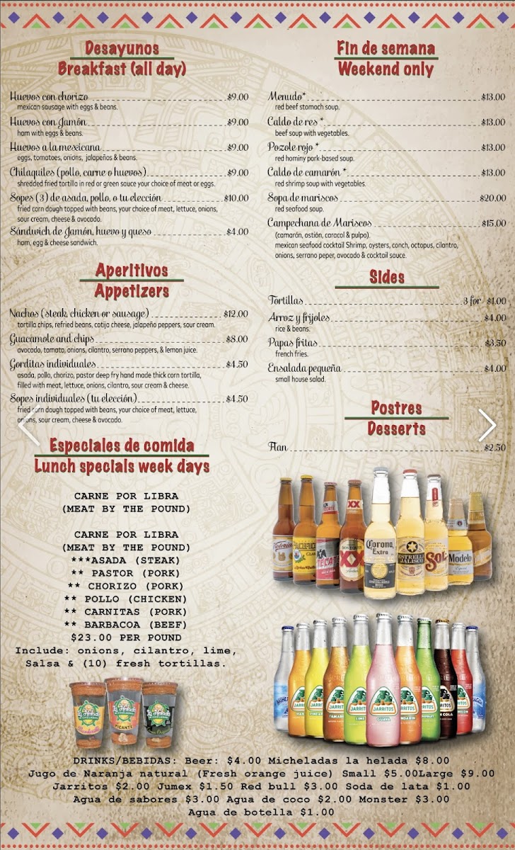 Carne asada, pollo, chorizo, pastor, cachete, campechano, carnitas.