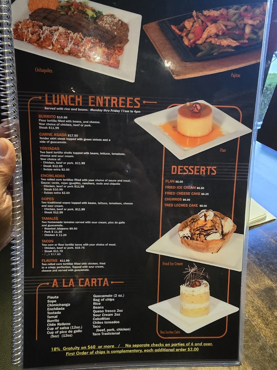 Premium skirt steak grilled and topped with a traditional cheese enchilada served with lettuce, guacamole and pico de gallo.