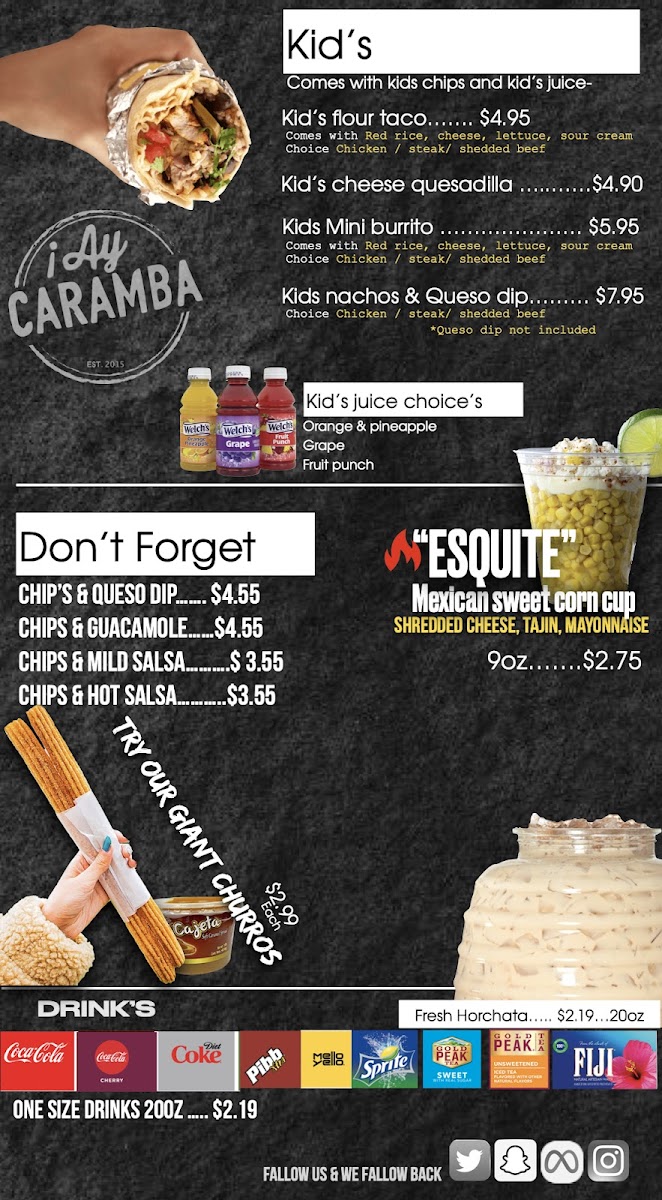 Ay Carumba's ingredients are always top notch. I've had burrito bowls which I never have anything to complain about and I've had their quesadillas. Those are pretty messy and not easily handled but the taste is always on point. Highly recommend them for a quick lunch grab!