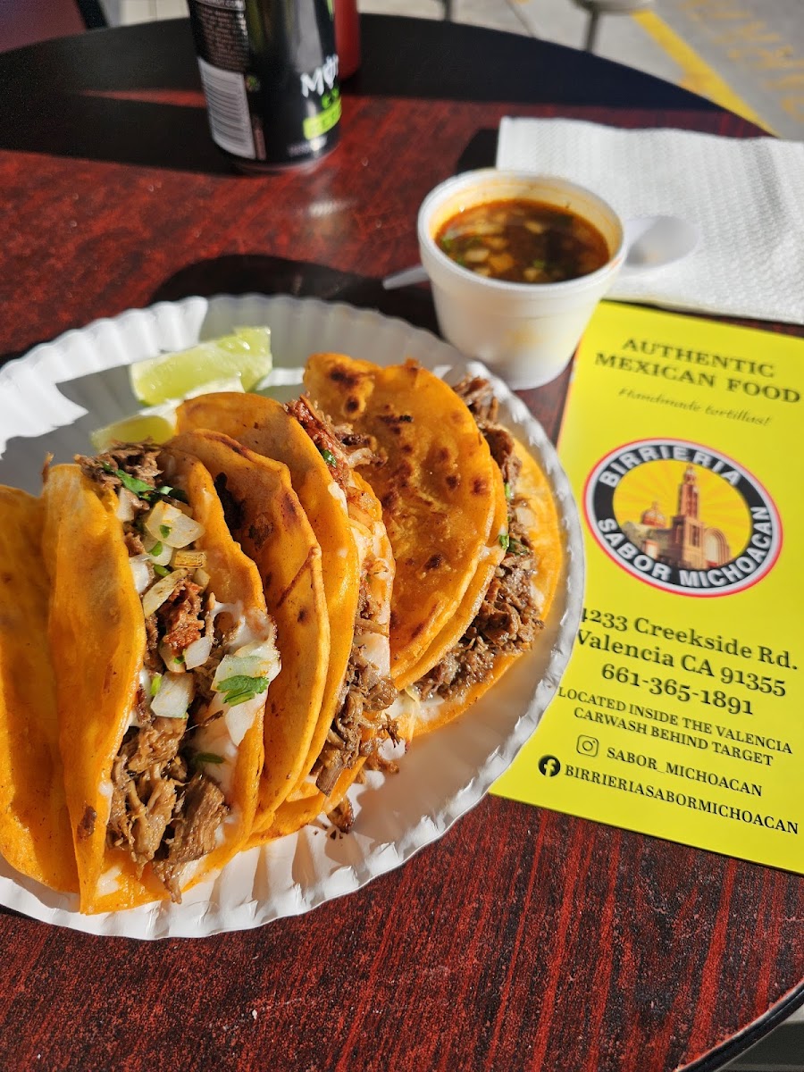 Birrieria Sabor Michoacan is based at 24233 Creekside Rd, Santa Clarita, CA 91355, United States. This Mexican restaurant has attracted 154 user reviews, highlighting its reputation for authentic cuisine. Peak wait times, up to 15 minutes, happen on Mondays from 10:30 AM to 2:30 PM, Tuesdays from 9:30 AM to 2:30 PM, and Saturdays from 11:00 AM to 3:30 PM. Other days mostly have no wait. Its menu features traditional Mexican specialties such as Birria De Chivo, Tacos De Birria Con Queso Dorados, Quinoa dishes, Goat Curry, and Carne Asada Fries, offering a delicious glimpse into rich regional flavors for patrons throughout the week.