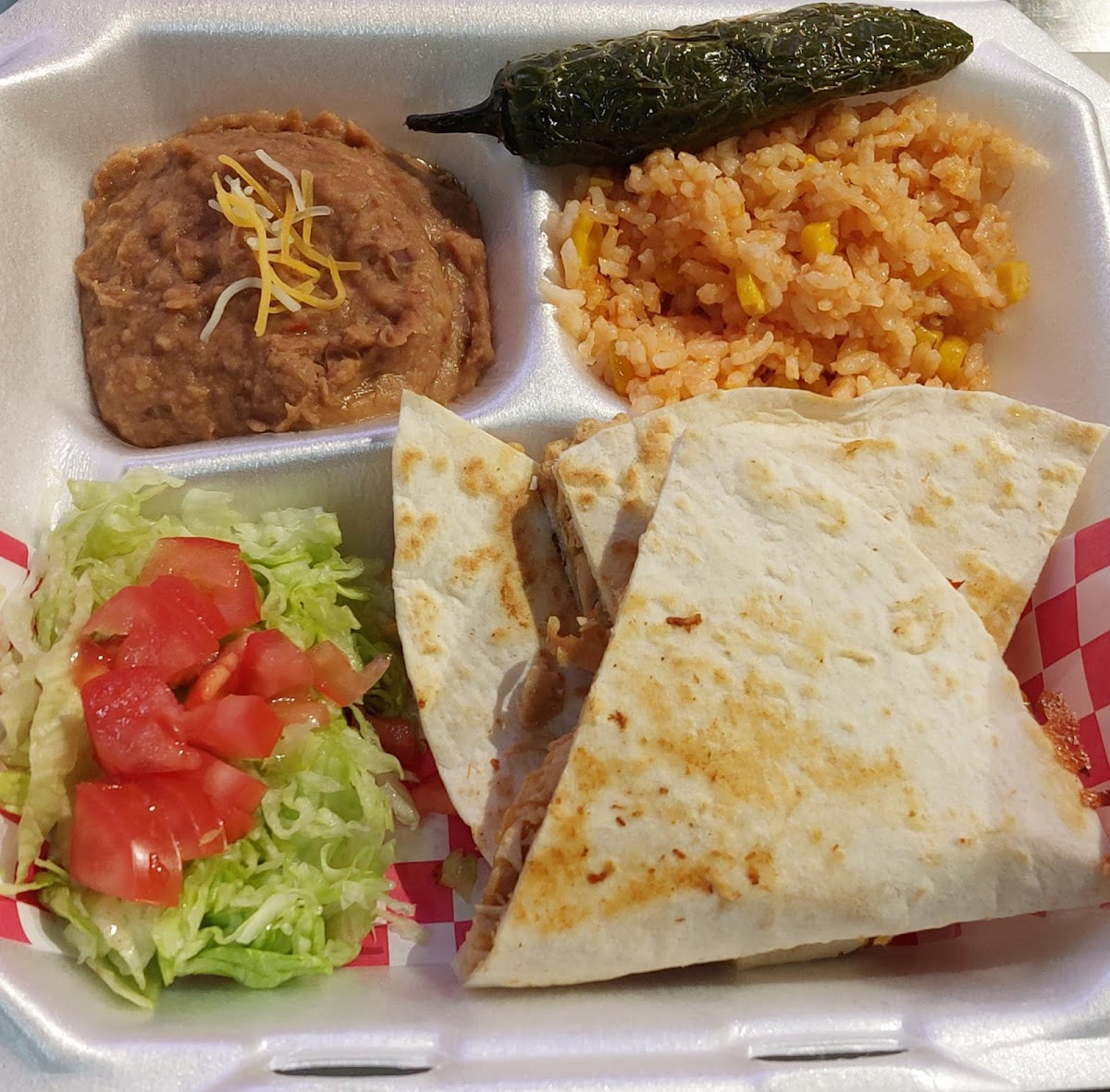 Excellent carne asada tacos. Rice & Beans are also very very good. Got a chance to try the quesadilla, and it was so good. Highly recommend.